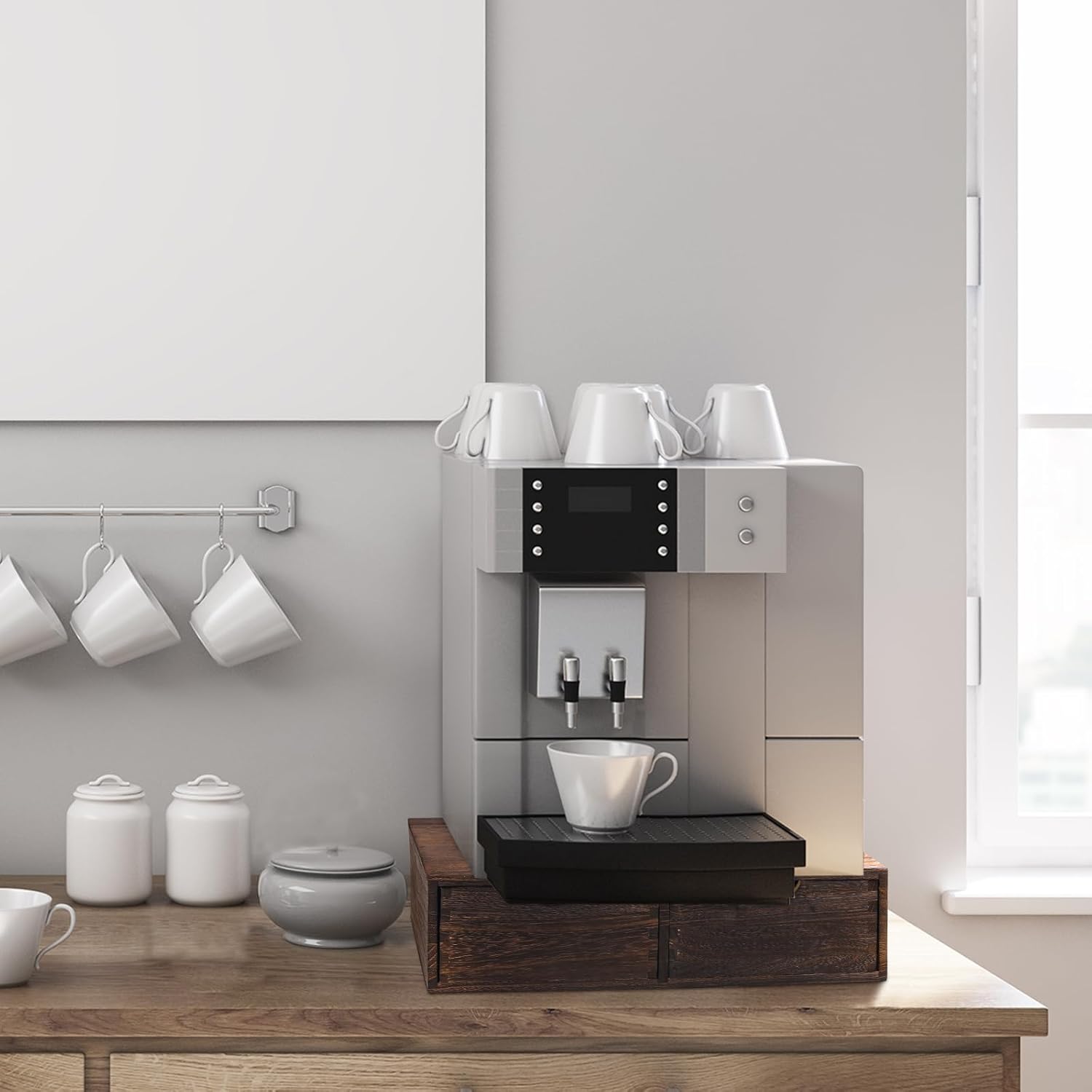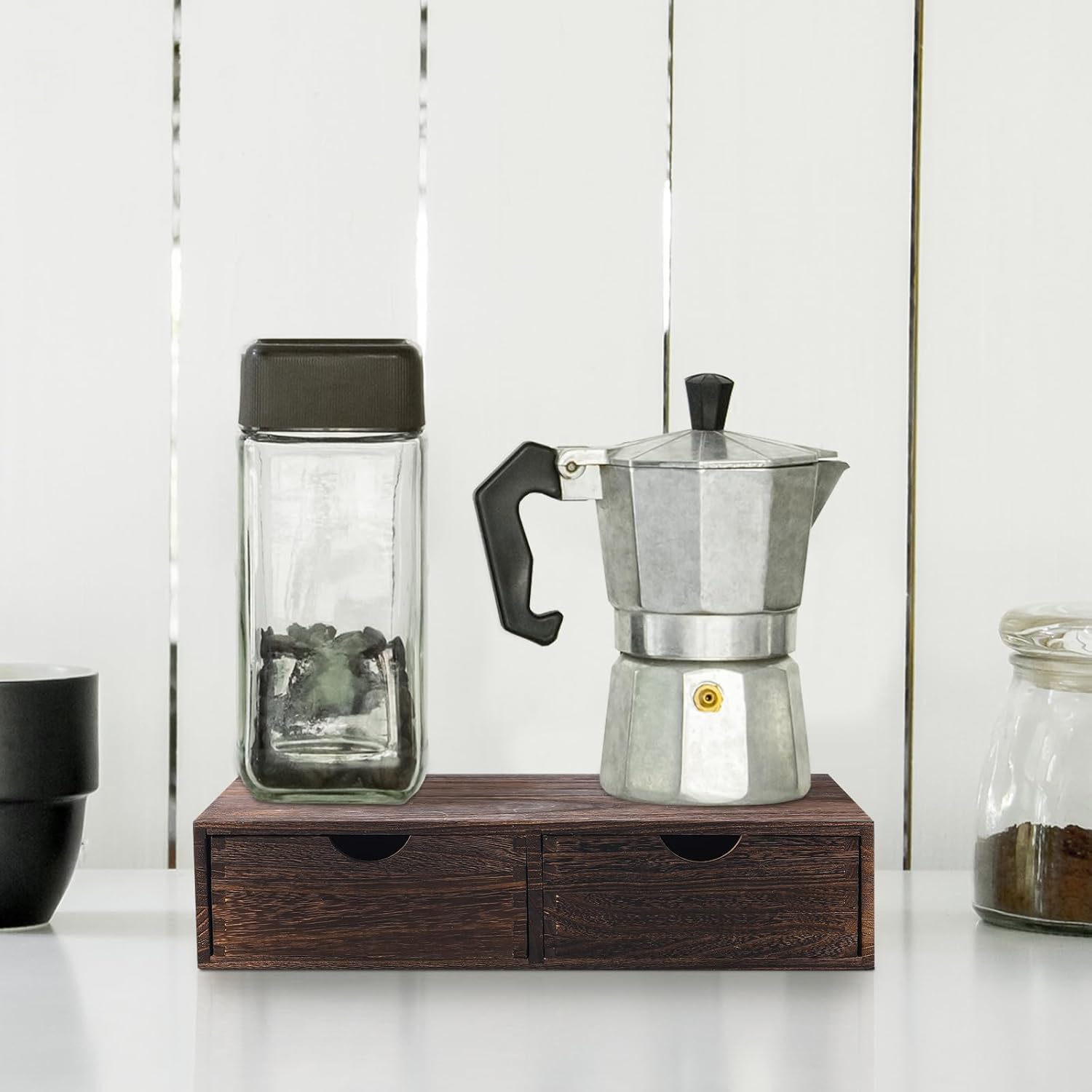 Suzile Coffee Pods Storage Holder Cabinet Vintage Countertop Storage Drawers Wooden Cup Organizer Under Brewe for Home Office Accessories(2 Drawer)