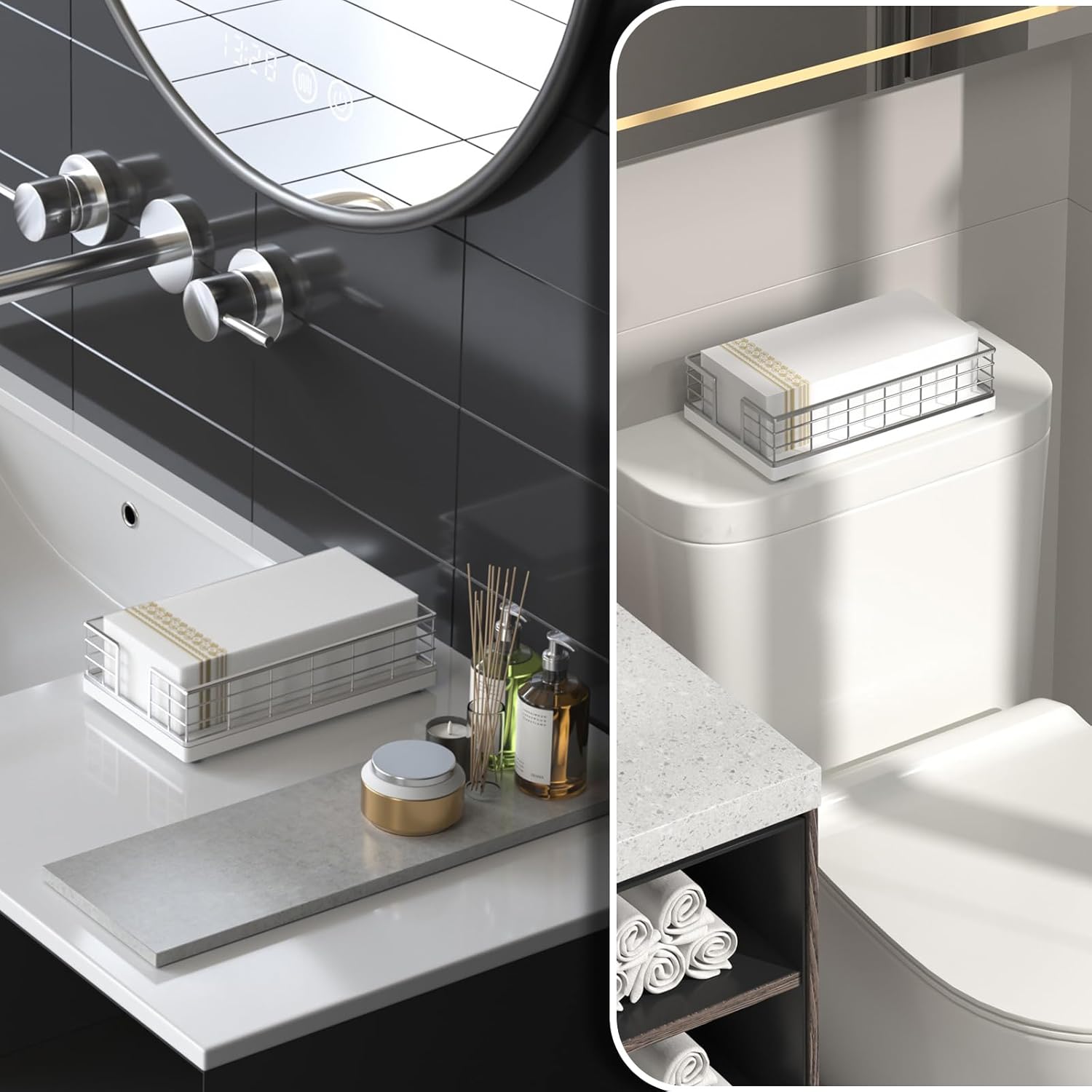- Large Size: The dimensions of the Bathroom Napkin Holder are 9.05 x 5.51 inches, with internal dimensions of 8.66 x 5.19 inches, It is large enough to accommodate all width and length guest towels; It fits on the back of the toilet, Will use it all year