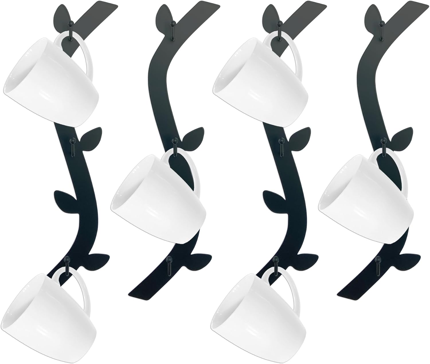 Ecqizer Coffee Mug Wall Rack - Metal Cup Holder Tree for Bar Decor - 4pcs Black Mounted Rack