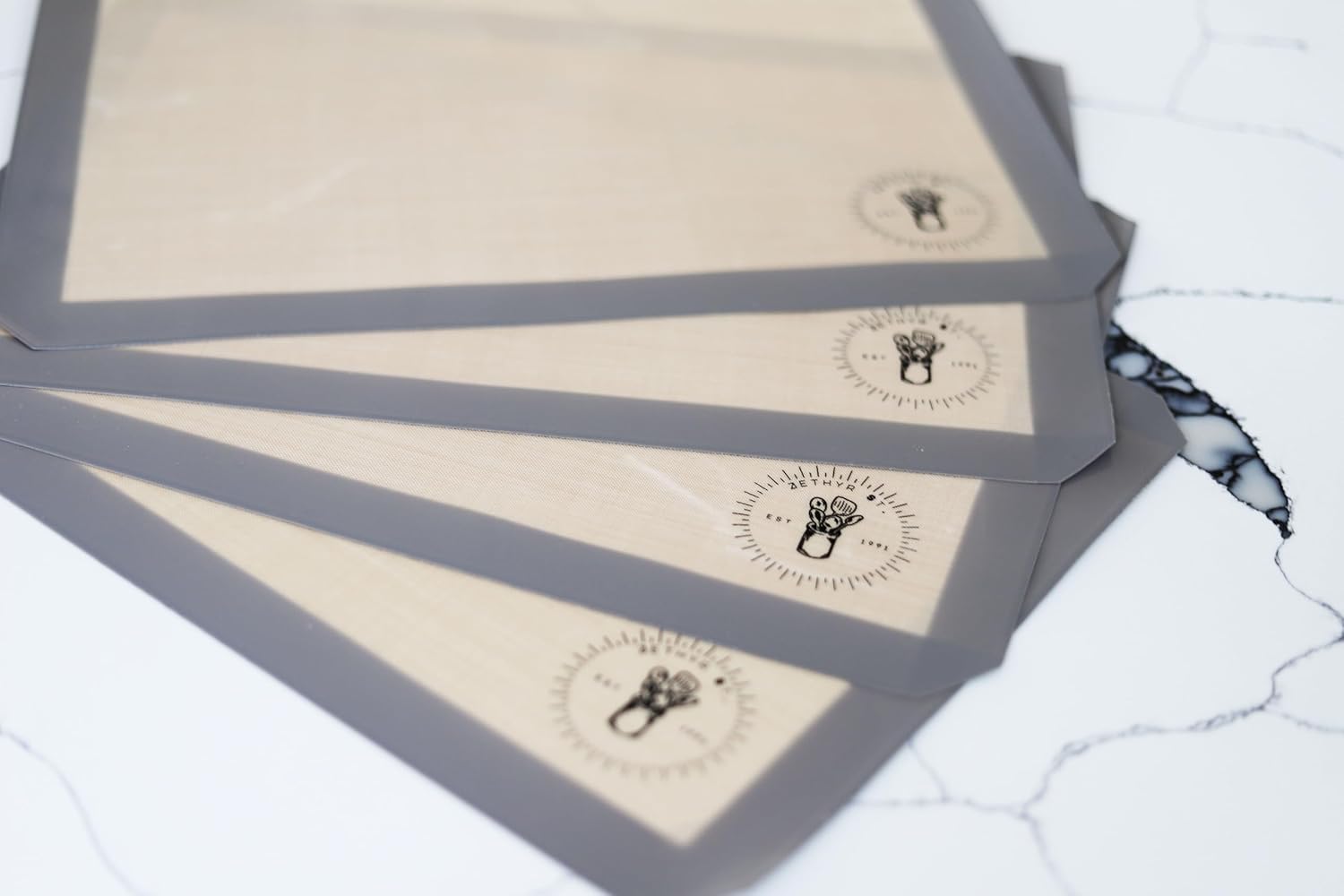 - Four-Pack Convenience: Our baking mat, compares favorably to any style baking sheet liner, and ensures your baked goods slide off easily. Perfect as a pastry mat or for macaron silicone baking mats.