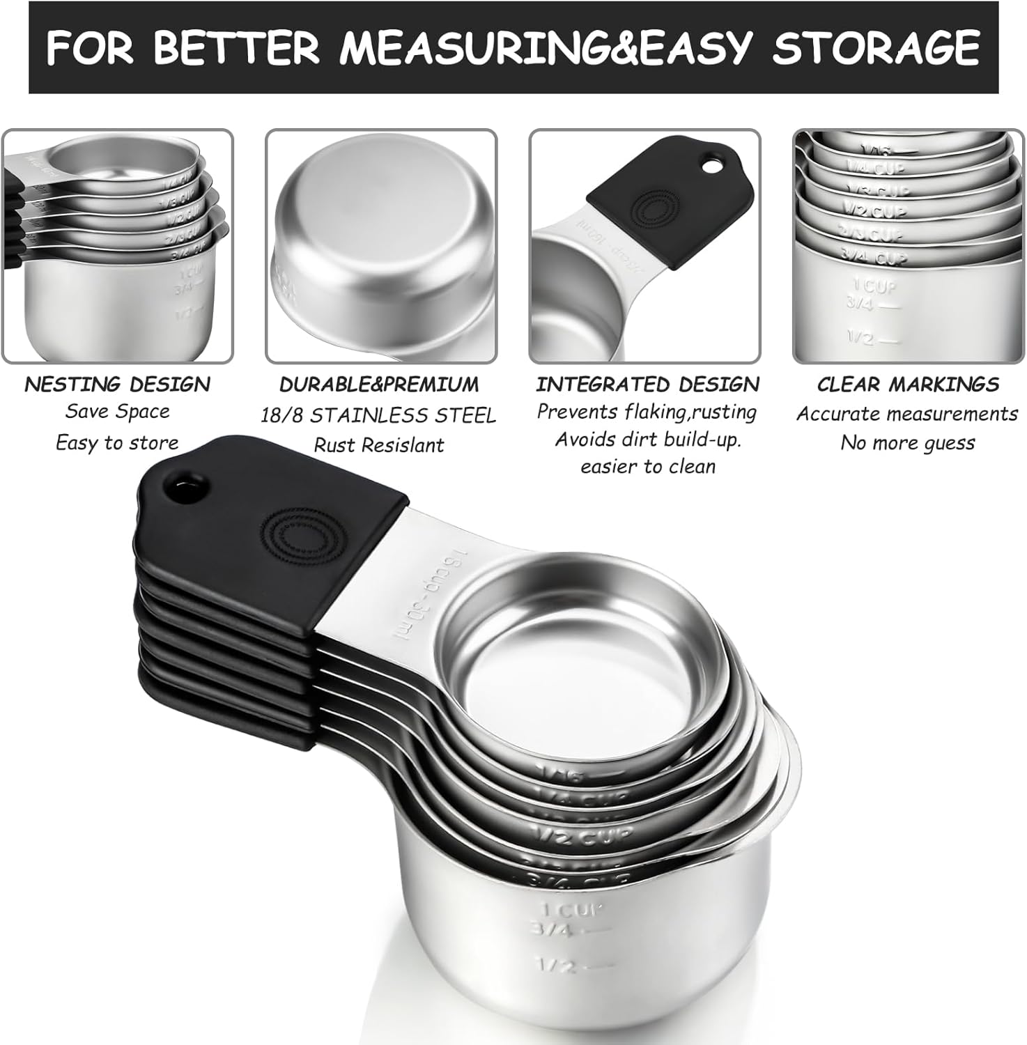 - 【Magnetic Measuring Cups Set】The size of the magnetic stainless steel measuring cup set includes 1/8 cup, 1/4 cup, 1/3 cup, 1/2 cup, 2/3 cup, 3/4 cup, and 1 cup. Seven different sizes are used for cooking or baking.