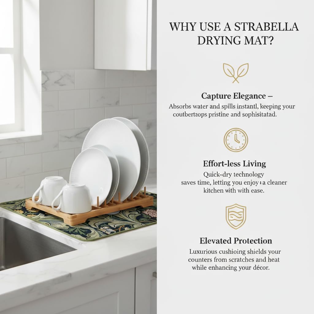 - MULTI-PURPOSE: Elevate your kitchen experience with our Multi-Use Dish Drying Mat. Its versatile design makes it perfect for drying dishes, and glassware, or even as a protective surface for countertop appliances. Streamline your kitchen tasks with a single, versatile solution.