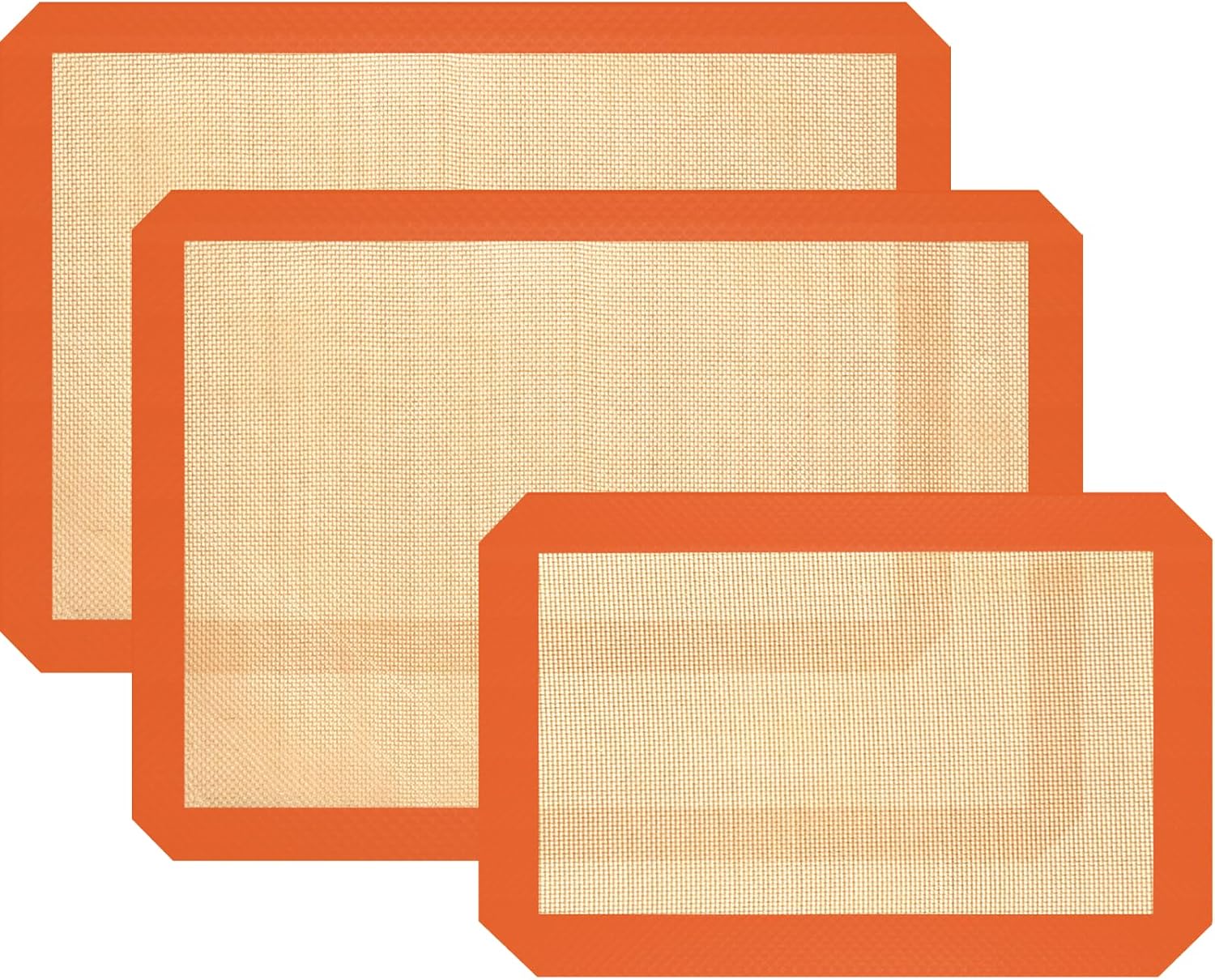 - [ MULTI-PURPOSE BAKING SET ] Silicone mat for baking set includes 2 half sheet baking mats (16.53 x 11.61in) and 1 quarter baking mat (11.81 x 8.26in). Silicone baking mats are great for macarons, pastries, cookies, breads, vegetables and meats. Make them a good helper for your cooking.