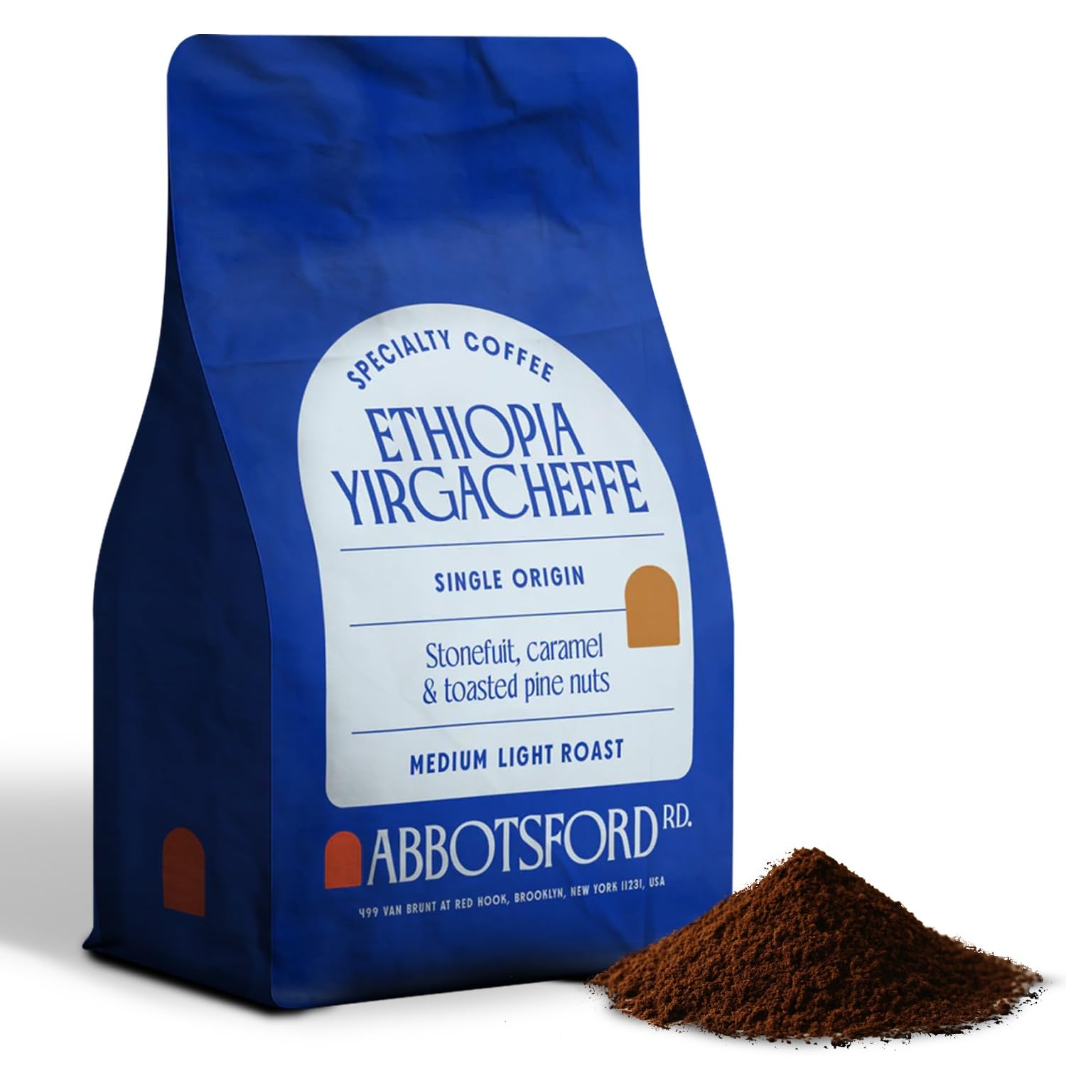 Ethiopia Yirgacheffe Ground Coffee, Medium-Light Roast Ground Coffee with Stone Fruit, Caramel & Toasted Pine Nuts, Specialty Coffee, Single Origin 12oz Bag, Perfect Flavored Ethiopian Coffee Gift
