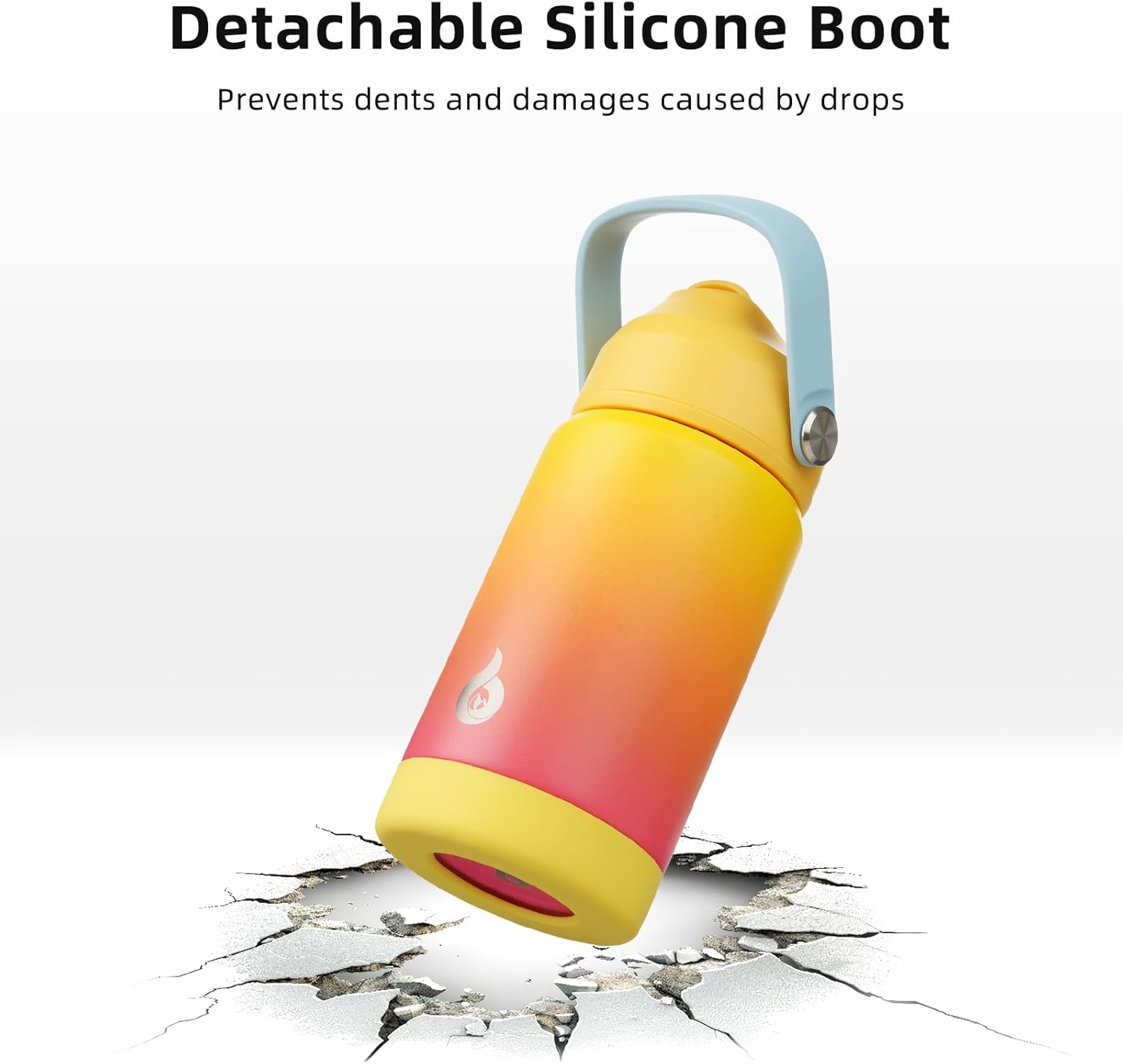 - NON-SLIP PROTECTIVE BOOT & DISHWASHER SAFE: This stainless steel water bottle comes with a detachable silicone boot to protect the bottom from bump damage. The wide mouth design of our water cup allows for easy filling, pouring, and cleaning. With 2 straws and 1 straw brush, you can easily clean the nozzle and straw with straw brush. It is also dishwasher safe, saving you time and effort in maintaining its cleanliness and hygiene