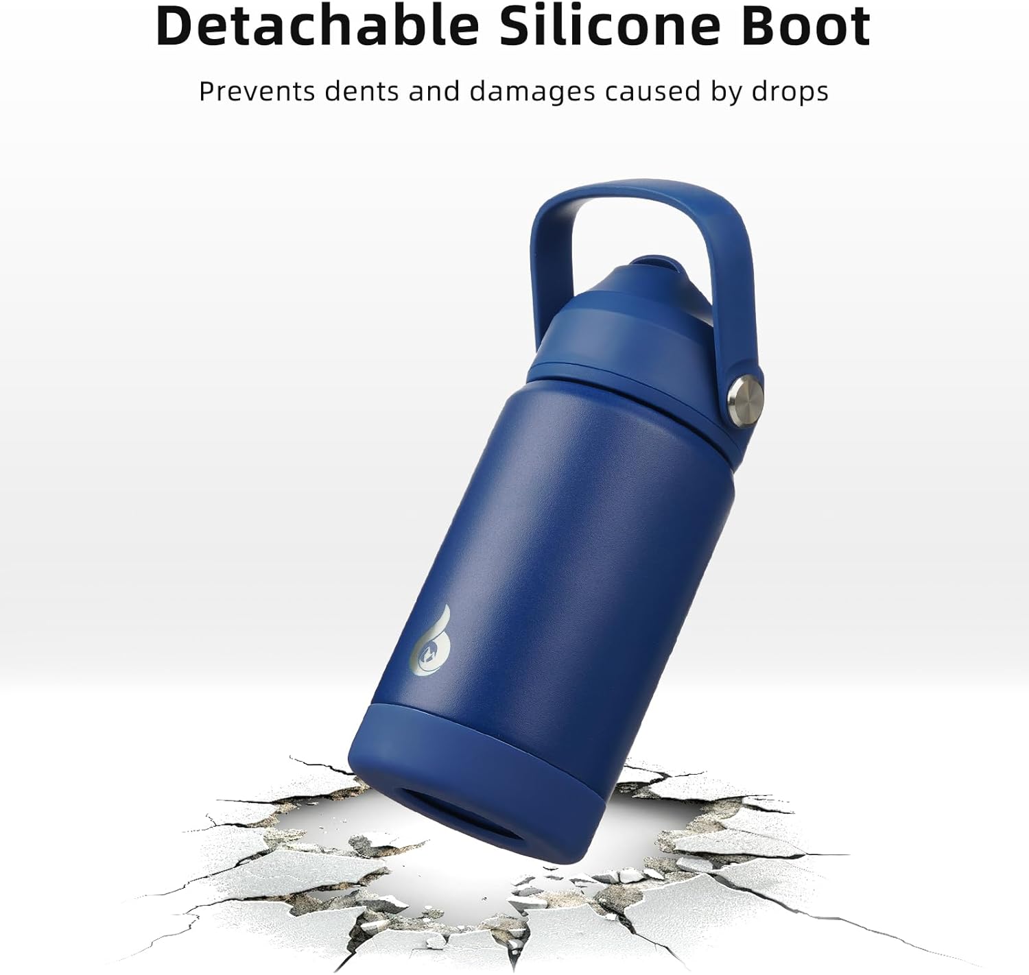 - NON-SLIP PROTECTIVE BOOT & DISHWASHER SAFE: This stainless steel water bottle comes with a detachable silicone boot to protect the bottom from bump damage. The wide mouth design of our water cup allows for easy filling, pouring, and cleaning. With 2 straws and 1 straw brush, you can easily clean the nozzle and straw with straw brush. It is also dishwasher safe, saving you time and effort in maintaining its cleanliness and hygiene
