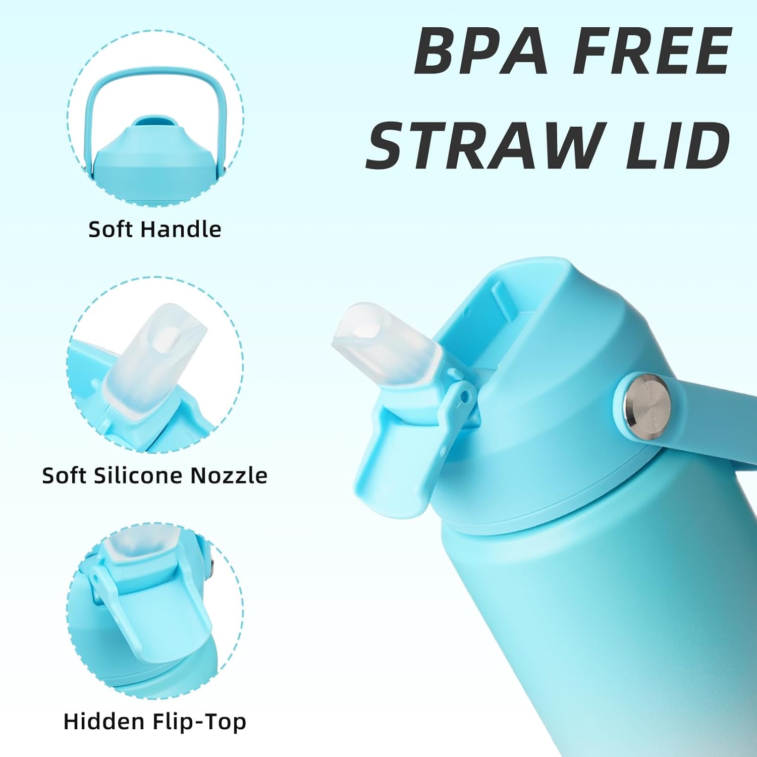 - INSULATED WATER BOTTLE WITH UPGRADED STRAW LID: BJPKPK insulated water bottle with straw lid use hidden flip-top Straw Lid to ensure open and close easily with one hand. The handle is soft and can freely rotate 180° for effortless carrying. Soft silicone nozzle will give you a better drinking experience. Upgraded hidden nozzle design can also keep the nozzle clean and ensure leakproof when it closed