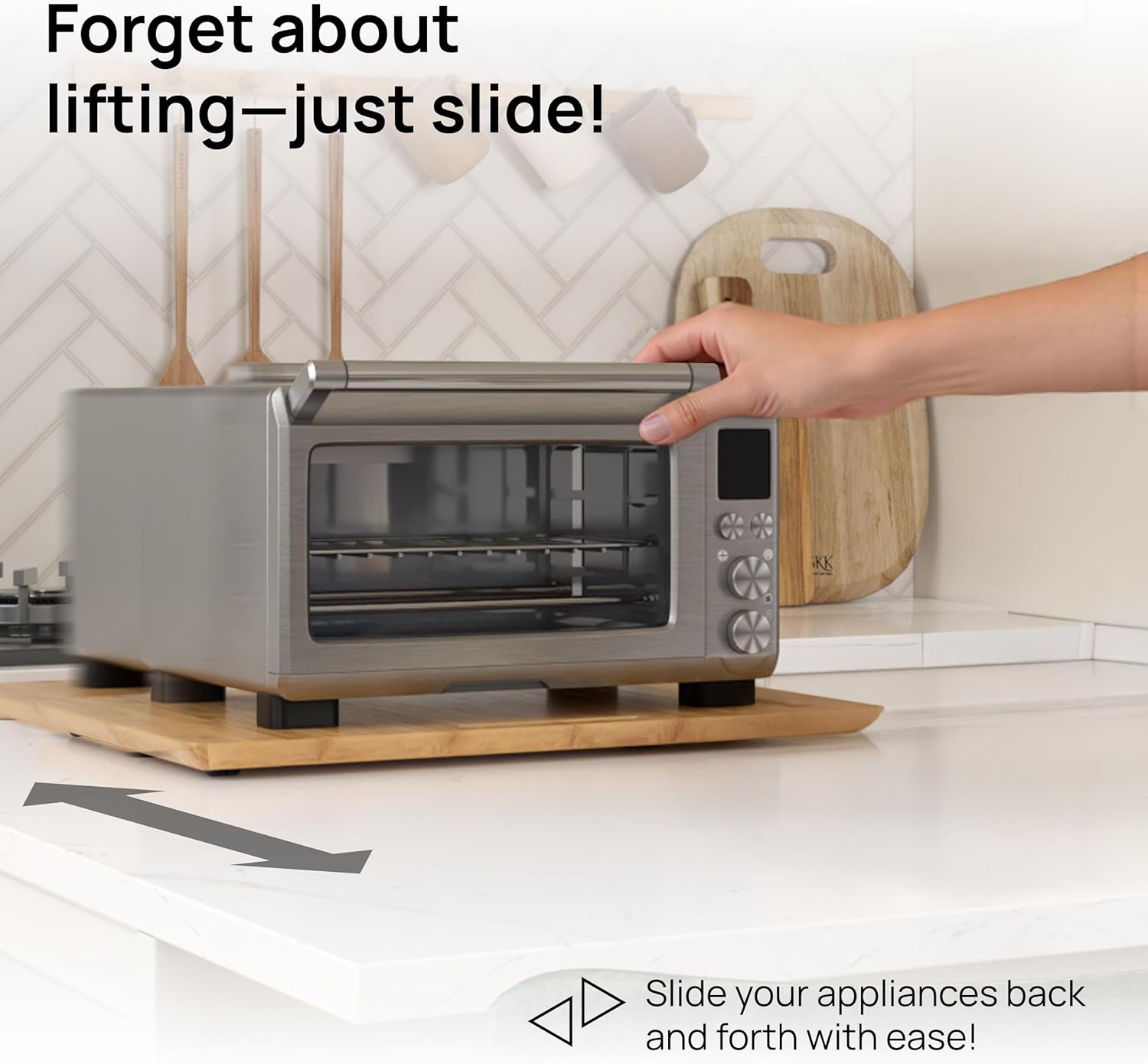 - 𝐃𝐄𝐒𝐈𝐆𝐍𝐄𝐃 𝐅𝐎𝐑 𝐘𝐎𝐔: With environmentally friendly bamboo, an elegant look to complement any kitchen, and top-quality quiet rubber wheels that let you quickly and quietly slide your appliances, this will quickly become your preferred kitchen accessory. If anything goes wrong, we’re here to make it right. Click Buy Now, and enjoy complete kitchen freedom today!