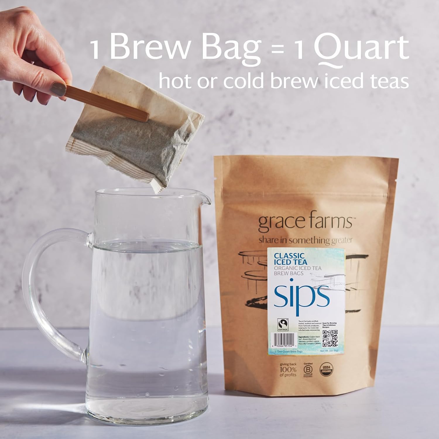 Grace Farms CLASSIC ORGANIC ICED TEA (Twelve 1qt. Brew Bags, 3 Gallons) | Premium Bold & Brisk | Easy Cold Brew 3 Gallons | Gives Back 100% of Profits