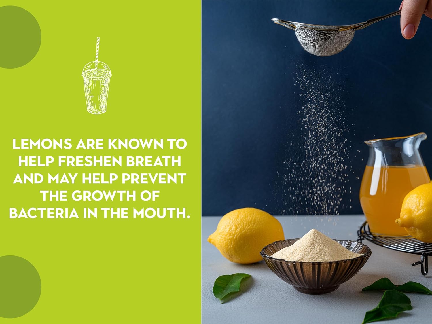 - VERSATILE USE: Perfect for smoothies, marinades, dressings, baked goods, and more, lemon powder is a convenient way to incorporate lemon into your recipes. One teaspoon equals approximately half of a lemon.
