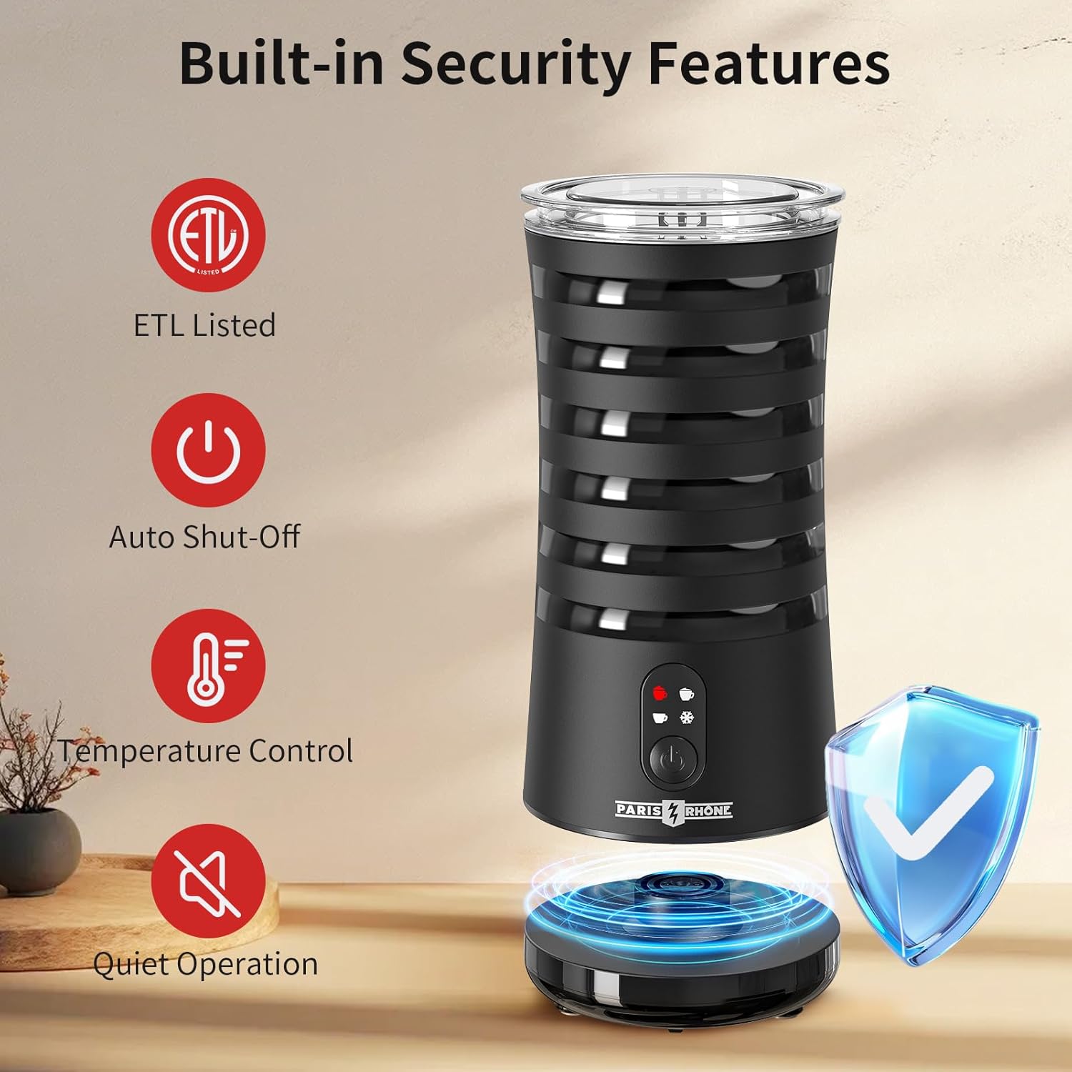 Paris Rhône Milk Frother, 4-in-1 Milk Steamer and Frother, Hot & Cold Foam Milk Warmer with Temperature Control, Auto Shut-Off Frothers for Coffee, Latte, Cappuccino, Macchiato