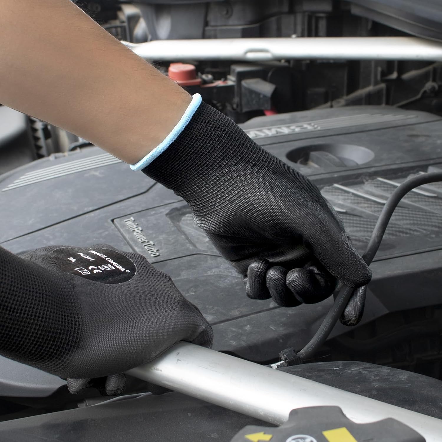- COMFORTABLE WORK GLOVES: These mens work gloves are lightweight, flexible, dexterous and comfortable, excellent breathability keeps hands cooler, dryer and more productive, Thin feature enhances dexterity radically, snug fit to all fingers for men and womens general duty outdoor work. These mens work gloves are packed in a value 12 pairs pack, Coated with Grippy PU coating, provide extra grip when grabbing construction materials and tools for outside work.