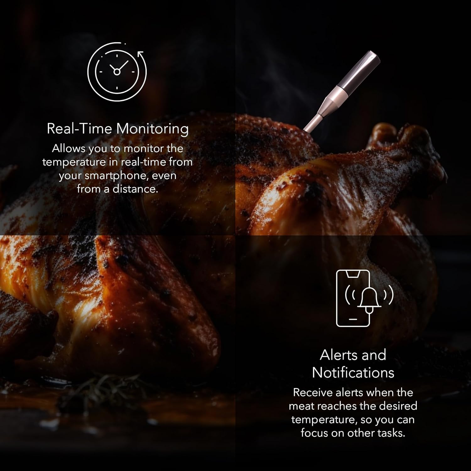- Intuitive App Integration: Comes with a free app for iOS and Android. Monitor real-time temperature with this digital thermometer cooking tool, receive push notifications, and access recipes from your smartphone. Ideal as an oven thermometer leave in for precise cooking.