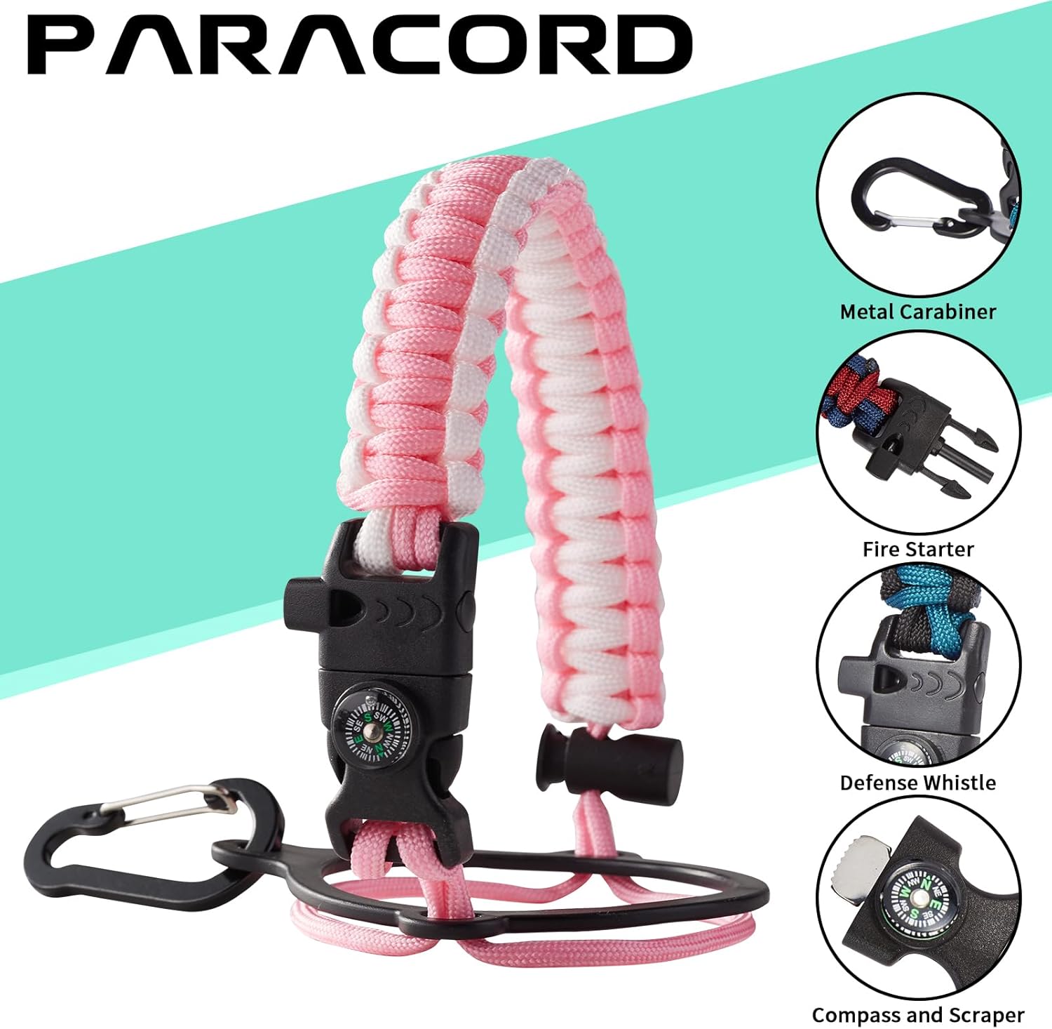 - UNIQUE PARACORD HANDLE: Bright color paracord matches the flask water bottle to give you a youthful vibe while adding a personal style. With a compass, safety loop, metal carabiner, flint, igniter and whistle to become your survival tool, making the 32 oz stainless steel water bottle with paracord an ideal survival kit for expeditions in the wild