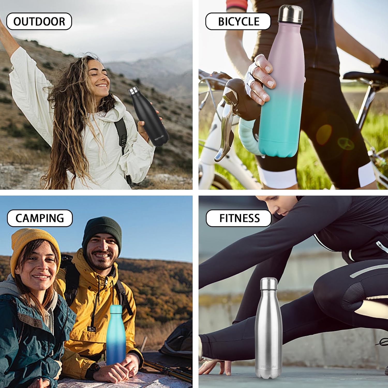 - SAFE & HEALTH:YEBTS life's insulated water bottles are made from BPA-free,phthalate-free, non-toxic, high-quality 18/8 food-grade stainless steel that is strong and rust proof for unique durability.So kids can sip every sip of their favourite beverage with confidence.Children drink water every day,a healthy water bottle is very important to them.This high-quality stainless steel water bottle is definitely the best growth gift for children!