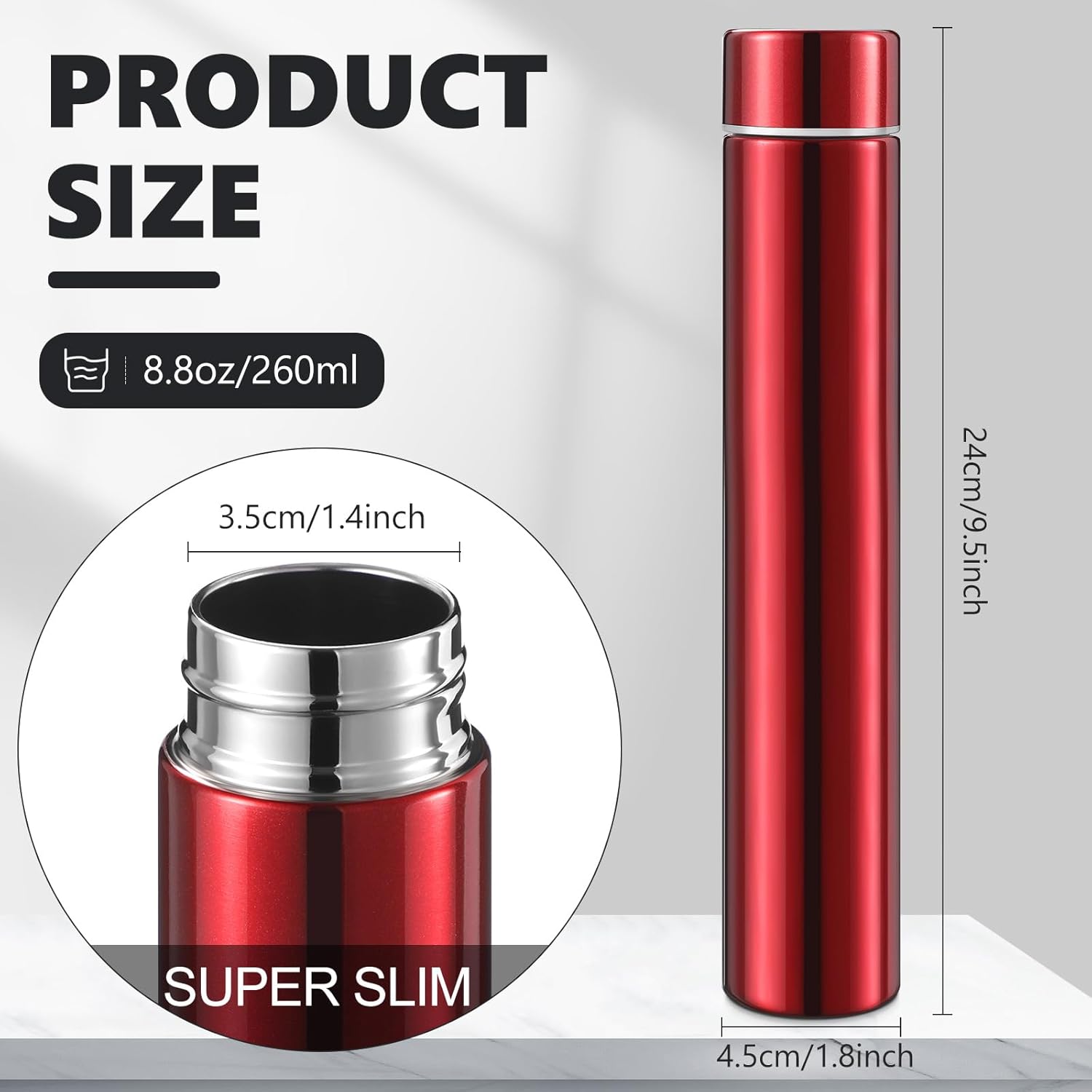 - What You Can Get: you will receive the slim water bottles measuring about 1.8 x 9.4 inches/ 4.5 x 24 cm in width and height, 8.8 oz/ 260 ml in capacity, enough to meet your daily use and replacement needs, and you can also share them with your family or friends; The small water bottle can be as gift for your family members, friends, and colleagues, tour pal, backpacker