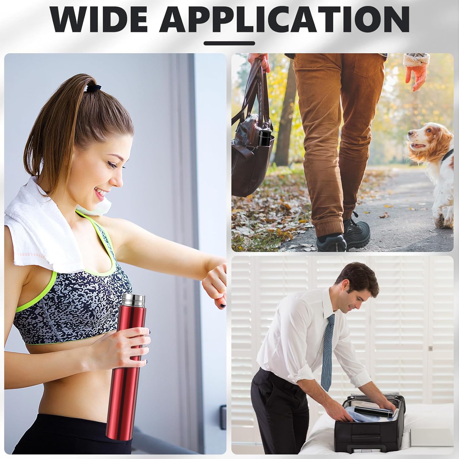 - Slim and Easy to Carry: our slim water bottle for purse is thin and long, you can hold it with one hand; You can easily put it into your backpack, lunch bag, handbag, purse, tote bag's side pockets, travel purse, women's purse, fishing pack, gym bag, or suitcase, so you won't need to use a disposable cup or another person's cup; We remind you to carefully check if the lid is tightened before placing it in your backpack
