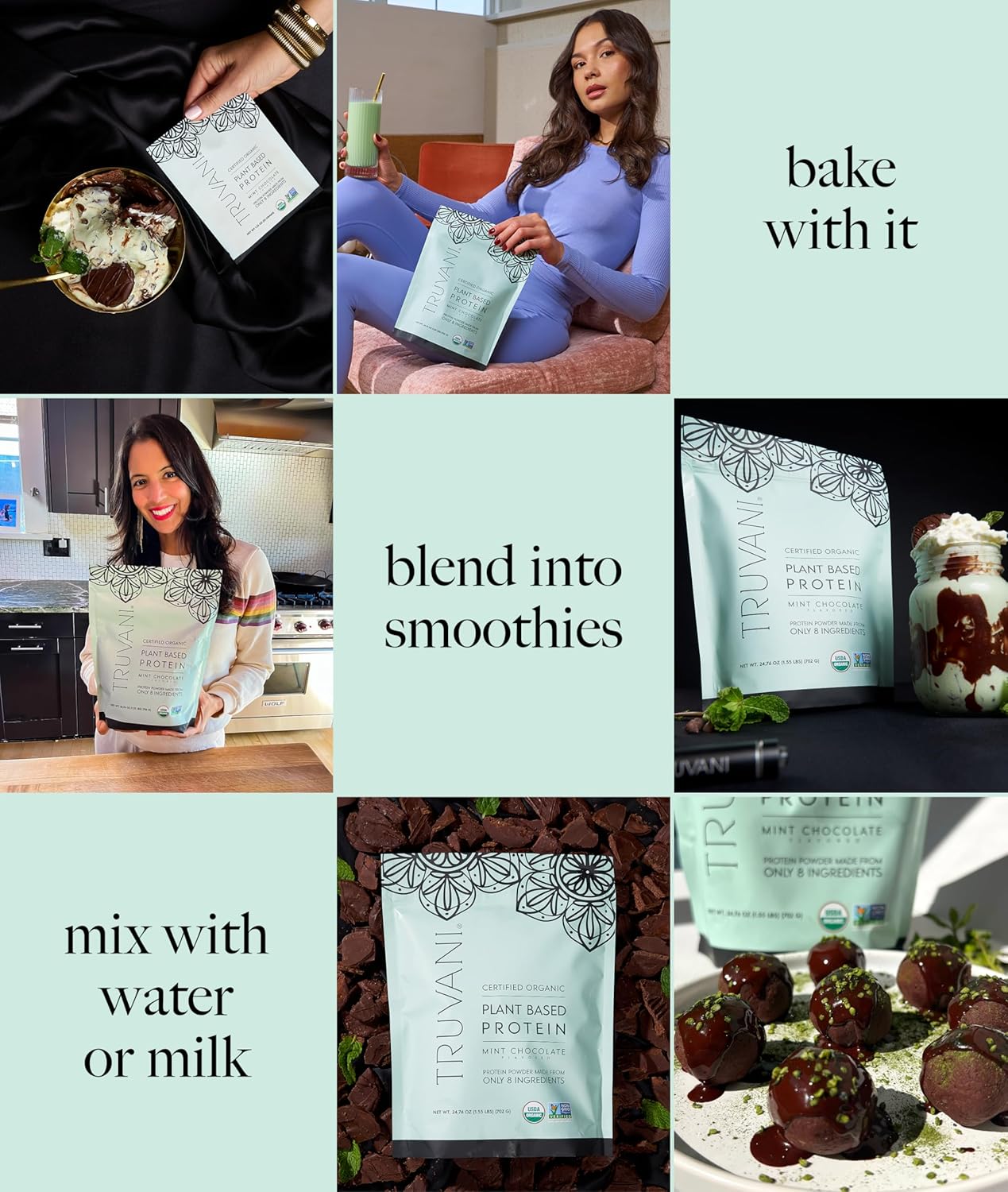 Truvani Vegan Pea Protein Powder | Mint Chocolate | 20g Organic Plant Based Protein Per Serving | 10 Servings | Keto | Gluten & Dairy Free | Low Carb | No Added Sugar