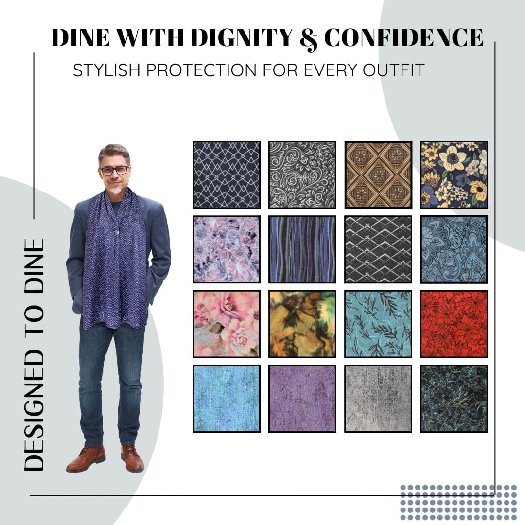 - 🎁 STAY DIGNIFIED & FASHIONABLE with our senior bibs scarves specifically designed to uphold the dignity of senior citizens. Wearing a “grown-up bib” is depressing and humiliating for many of our loved ones. Designed to Dine adult bib scarves allow our seniors to maintain a stylish and dignified look while dining with friends and family. Adaptive clothing to protect both your shirt and your dignity.