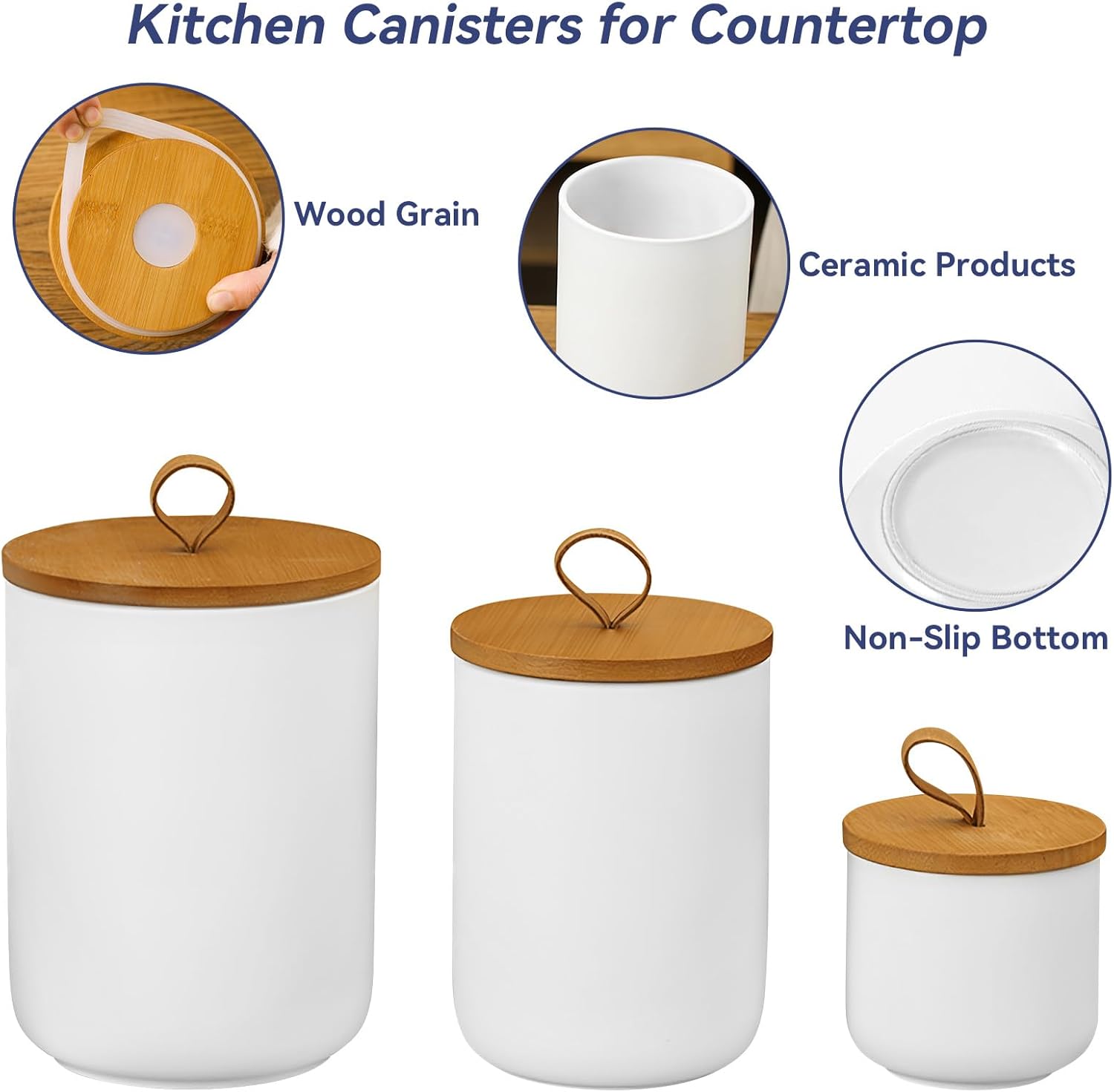 Ceramic Storage Jars, Modern Elegant Polished Airtight Gorgeous Storage Canisters with Wooden Lid Small Food Stroage Jar for Kitchen Spice Tea Vanilla Sugar Coffee Beans (3Pcs Suit White)