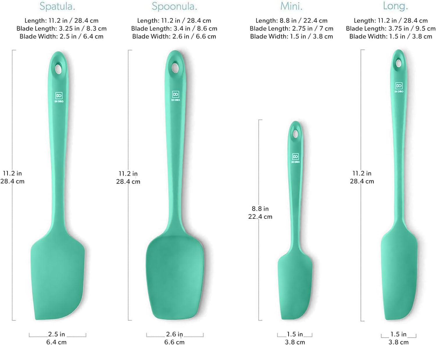 DI ORO Silicone Spatula Set - Rubber Kitchen Spatulas for Baking, Cooking, & Mixing - 600°F Heat-Resistant & BPA Free Silicone Scraper Spatulas for Nonstick Cookware - Dishwasher Safe (4pc, Mint)