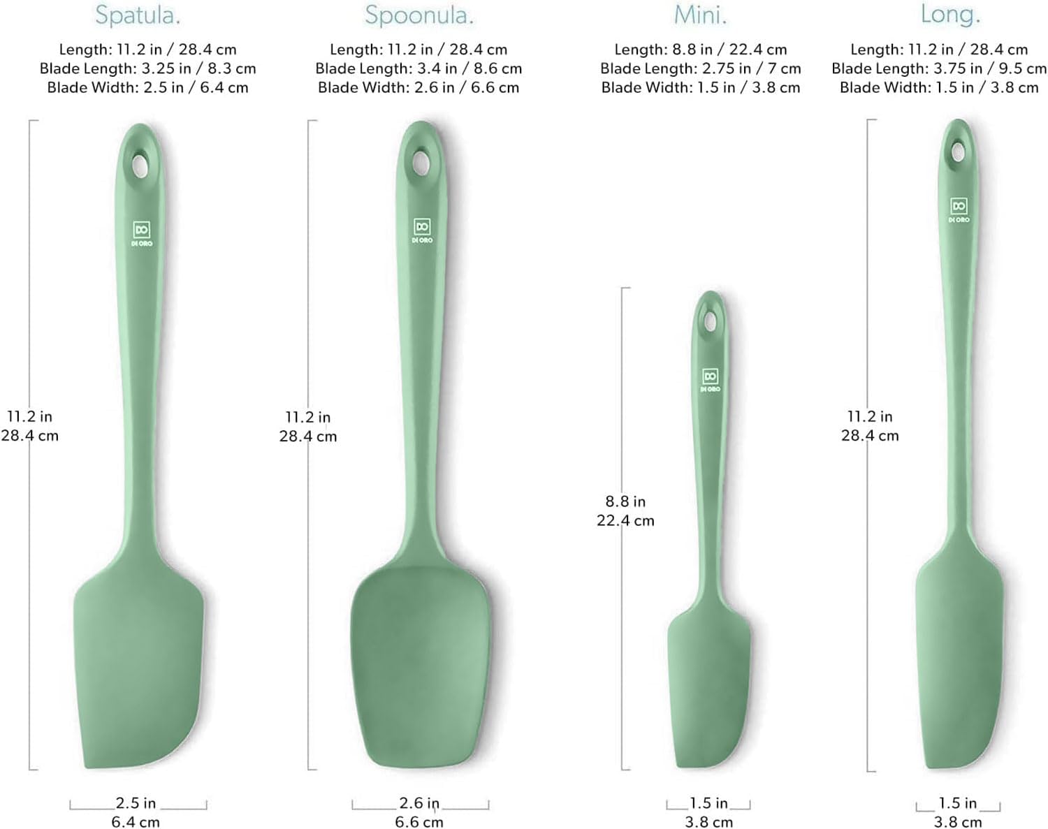 DI ORO Silicone Spatula Set - Rubber Kitchen Spatulas for Baking, Cooking, & Mixing - 600°F Heat-Resistant & BPA Free Silicone Scraper Spatulas for Nonstick Cookware - Dishwasher Safe (4pc, Sage)