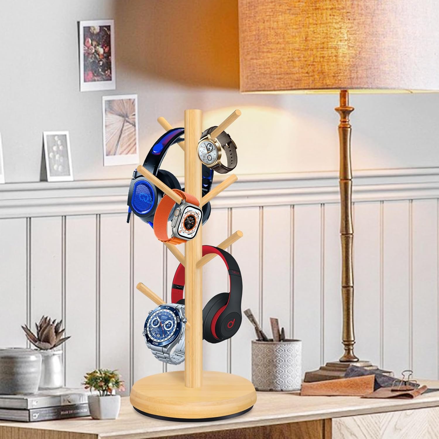 Mug Holder Tree,New Upgraded 360° Rotated 8 Hooks Coffee Cup Holder for Counter,Wood Coffee Mug Rack Standing for Coffe e Bar Accessories and Kitchen Home Organizer(Natural)