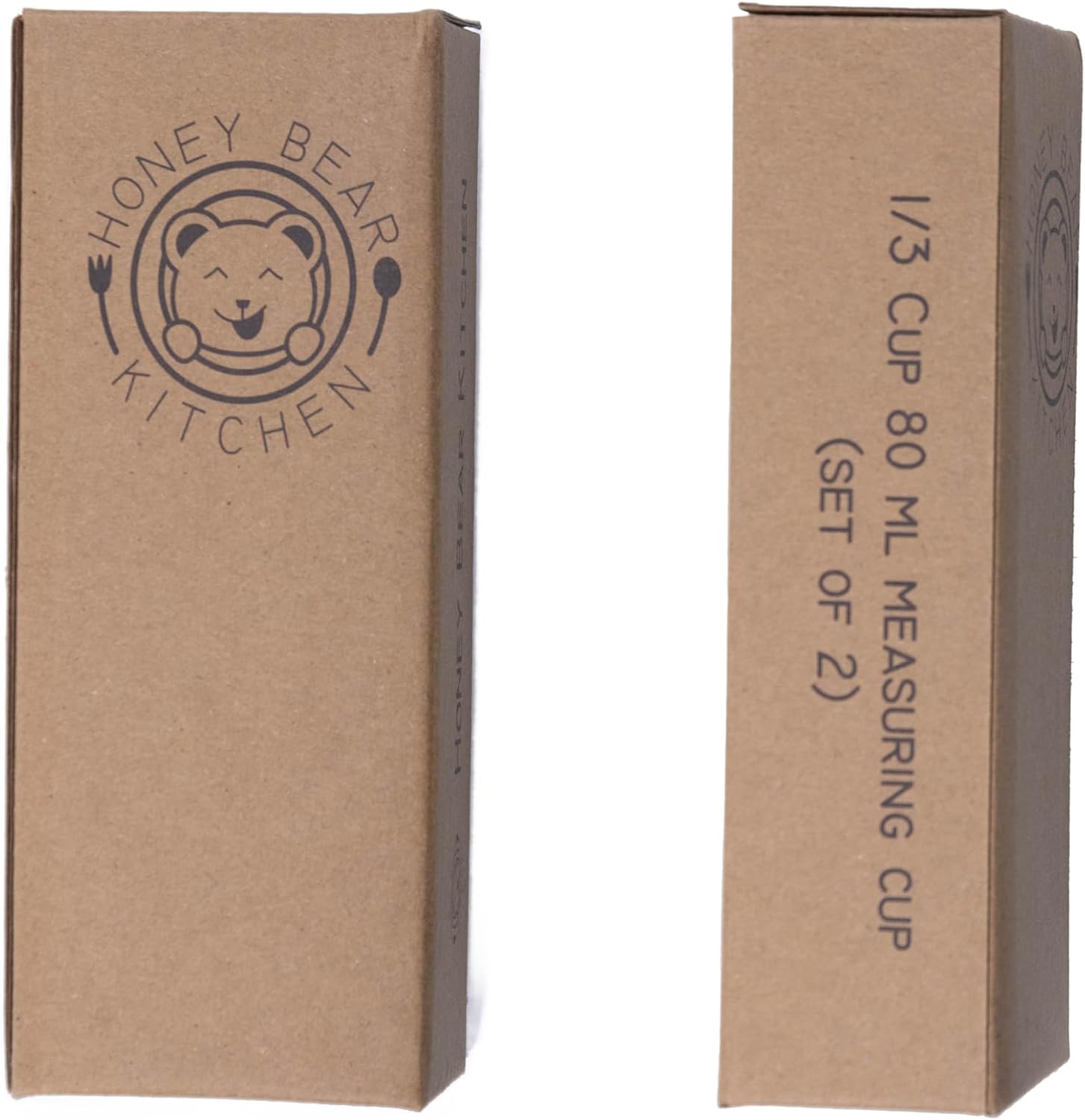 Honey Bear Kitchen 1/3 Cup 80 ml Leave-in Measuring Scoop Cups, Polished Stainless Steel (Set of 2)