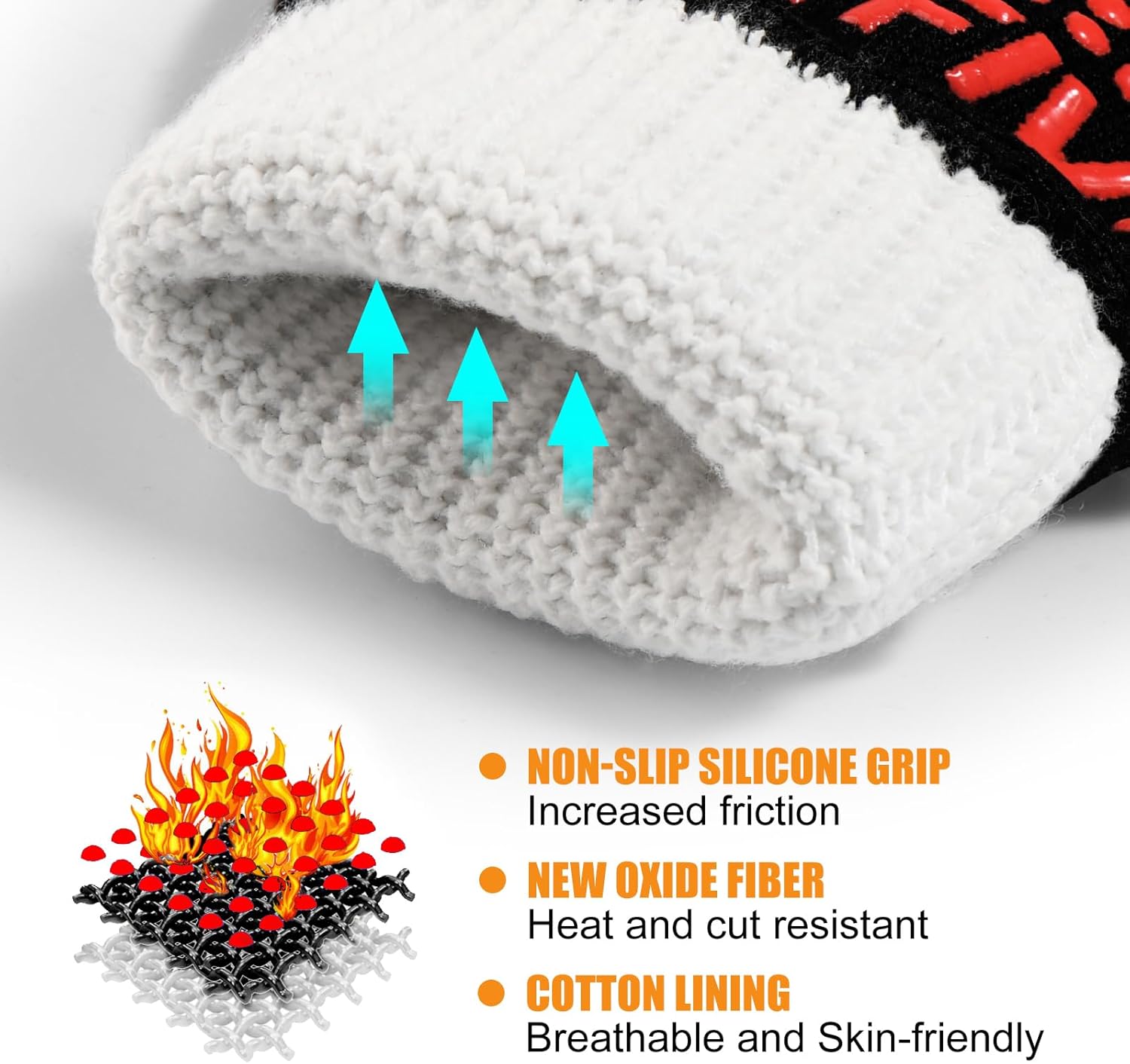 BBQ Gloves, Oven Gloves, 1472°F Extreme Heat Resistant Barbecue Gloves, Silicone Non-Slip Oven Mitts, Kitchen Gloves for Cooking, Grilling, and Baking (Red)