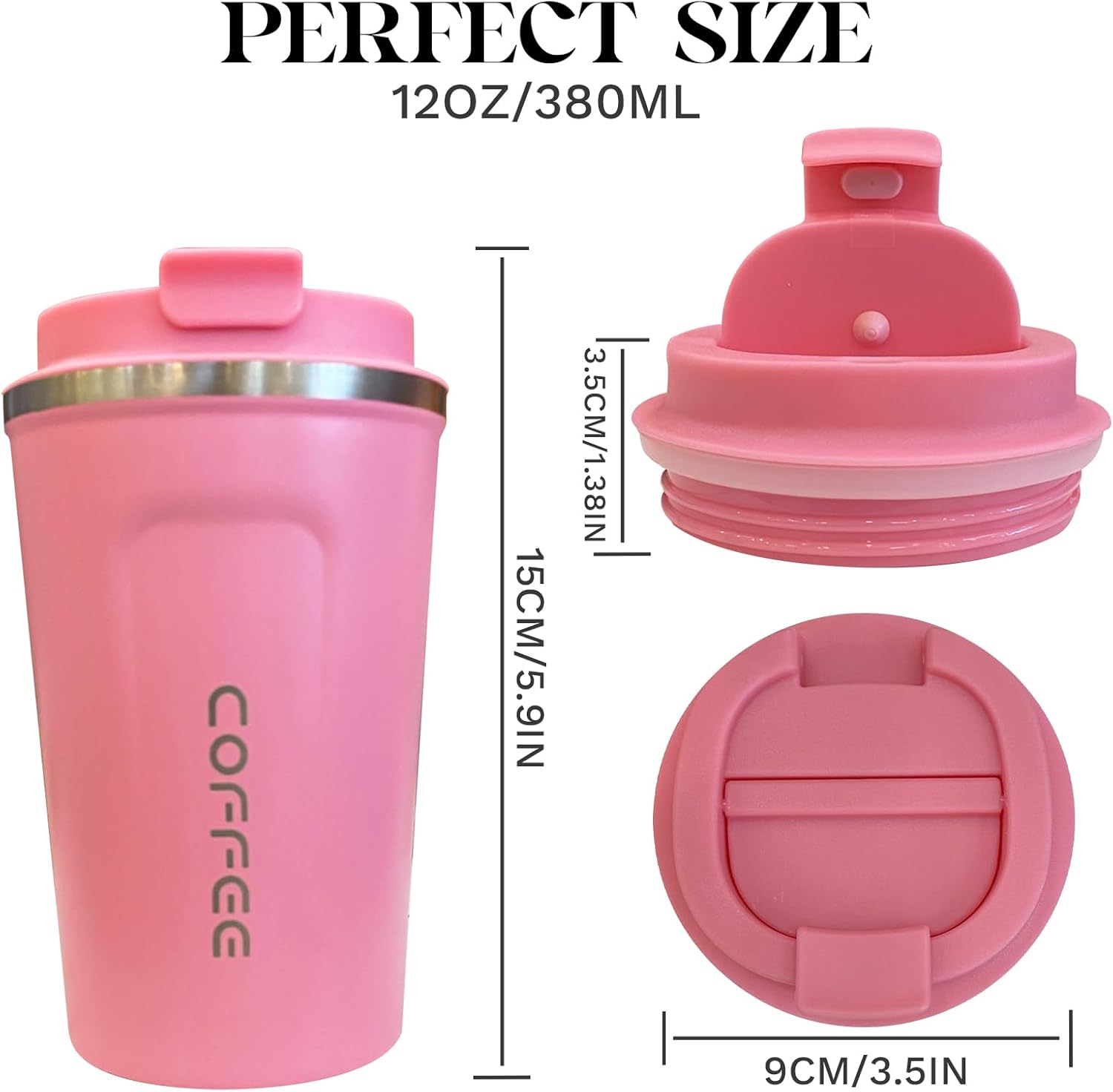 YINBAOGE Insulated Travel Coffee Mug Spill Proof Leak Proof Pobtable To Go Camping Stainless Steel Coffee Tumbler Reusable Coffee Cups with Lids Thermos for Hot and Cold Drink (2nd-Pink, 12 OZ)