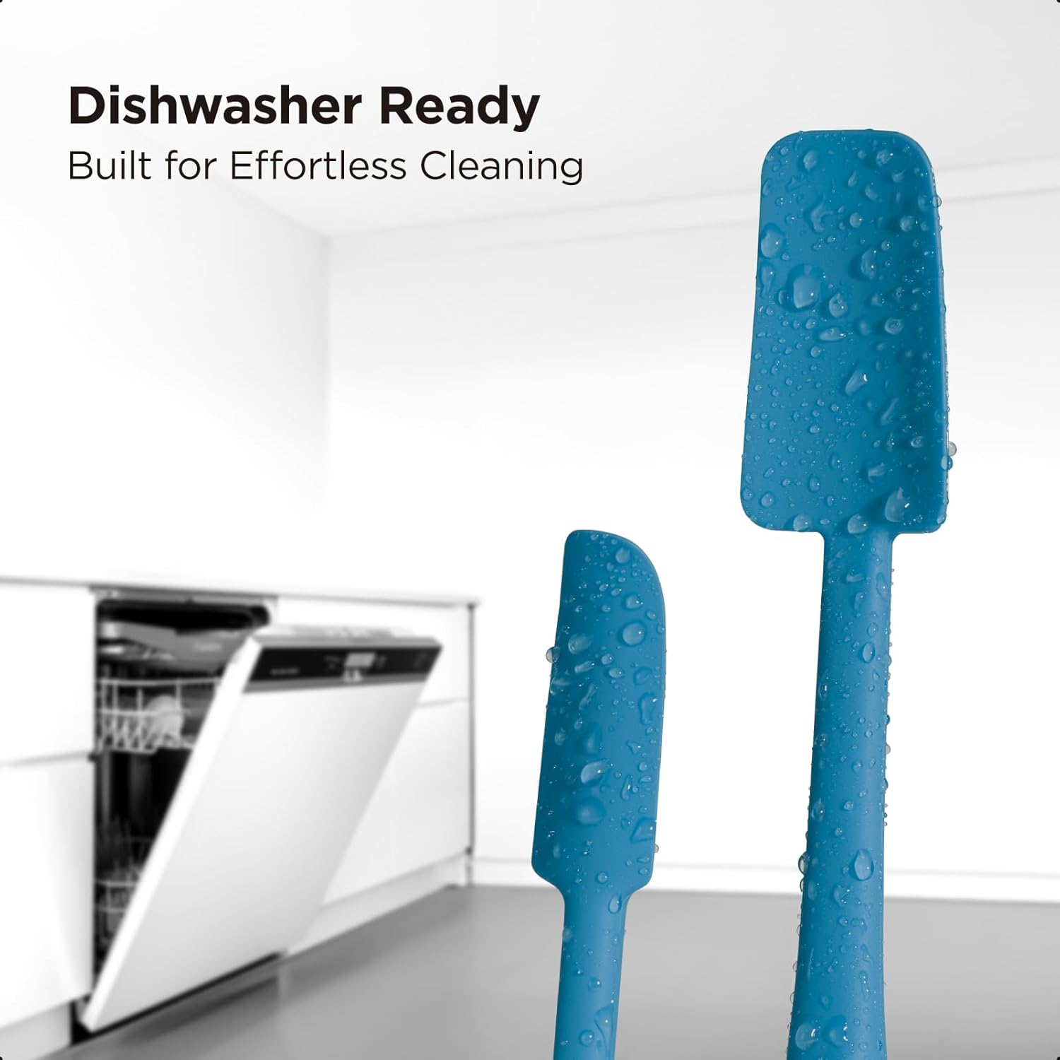 Kitchen Mama WaltzGrip Platinum Silicone Jar and Can Spatula Utensil Set: Heat-Resistant, Nonstick Scraper, Scooping, Perfect for Smoothies, Jam, Cream, Peanut Butter, Dishwasher Cooking Gadget (Blue)