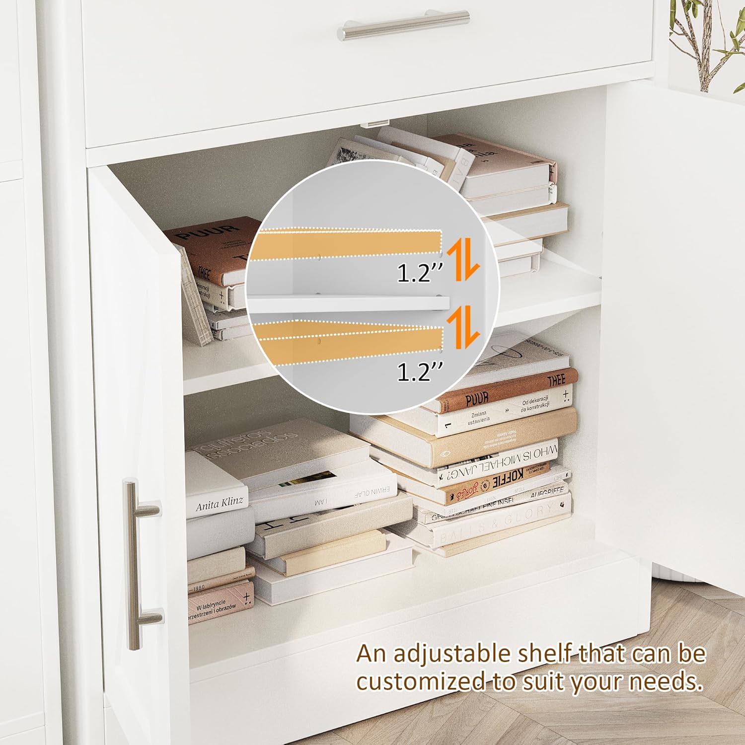 Vongrasig Sideboard Buffet Cabinet with Storage, 32” Modern Kitchen Storage Cabinet with Open Storage, Adjustable Shelf, Wood Farmhouse Coffee Bar Buffet Table for Kitchen, Dining Room, White