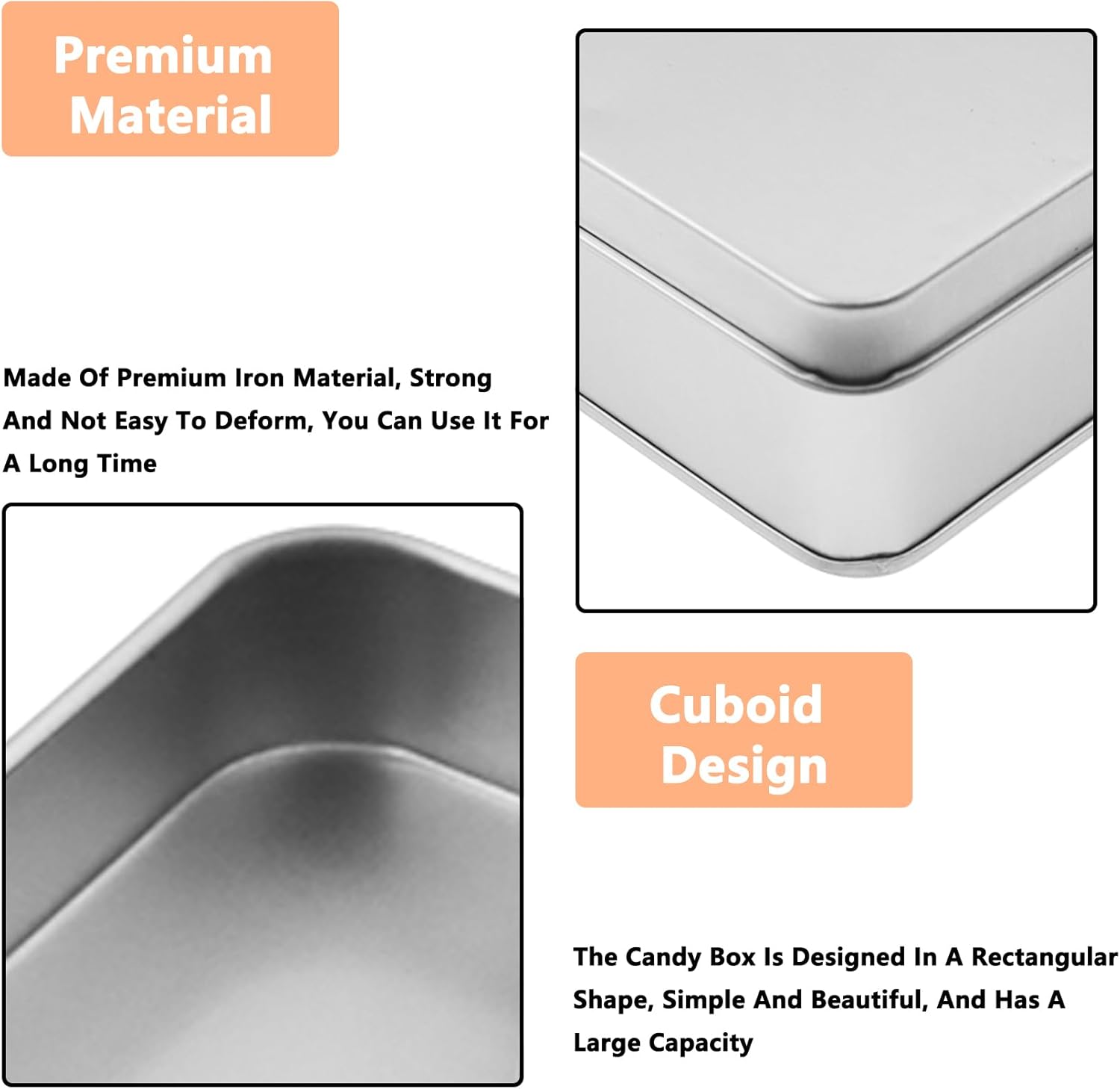 - High Quality Material - These metal empty boxes are made of tinplate,durable to use,not easy to break and rust,and have well-polished edges for easy placement anywhere.Each box comes with a matching silver press-top lid.