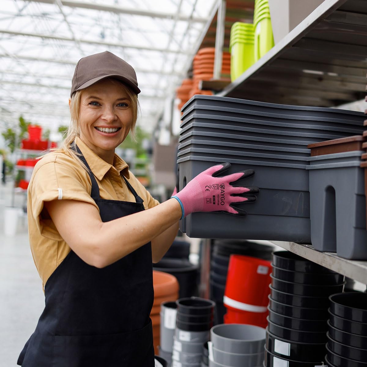 KAYGO Safety Work Gloves PU Coated-12 Pairs Seamless Knit Glove with Polyurethane Coated Smooth Grip on Palm & Fingers, for Men and Women, Ideal for General Duty Work, KG11P (XS, Pink)