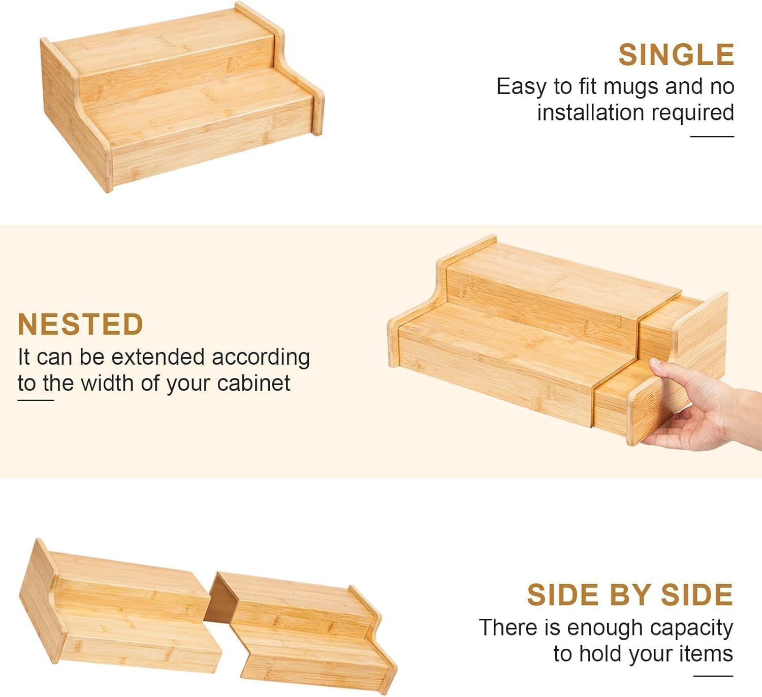 2-Tier Expandable Coffee Mug Holder, Mug Organizer for Kitchen Cabinets, Bamboo Mug Cup Rack, Multi-Functional Cup Holder Shelf, Coffee Bar Organizer, Home