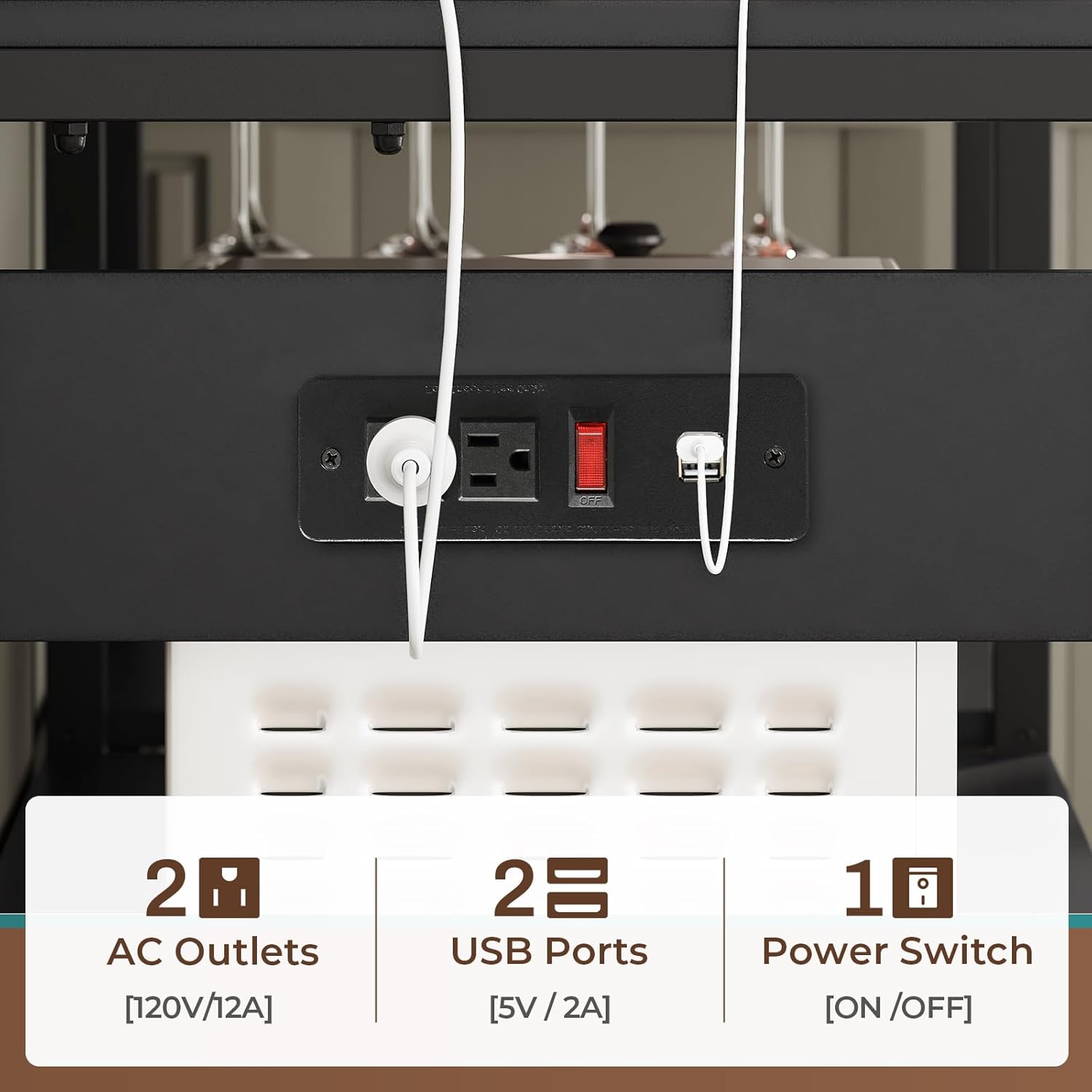 - 【Bakers Rack with Power Outlets】The table on the frame is made from FSC-Certified wood. This coffee bar is equipped with 2 AC outlets, 2 USB charging ports to provide power for up to 4 devices simultaneously. The switch is convenient and safe to turn off power, no need to unplug appliances at all times. Of course our baker rack comes with RGB LED light strip which can not only increase the atmosphere of the kitchen but also brighten the work area so that you can operate at night.