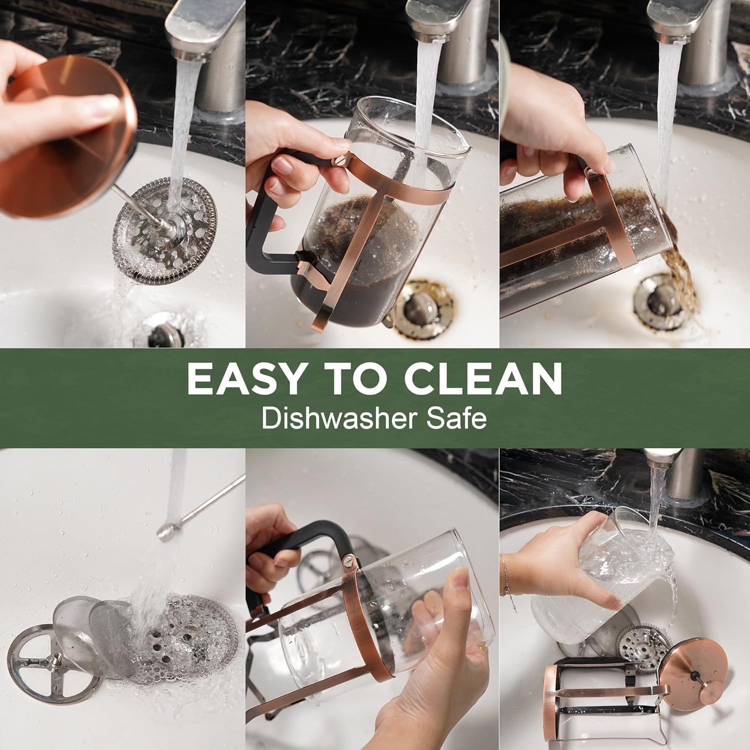- EASY TO CLEAN: Cleaning up after brewing is quick and easy—all parts are dishwasher - safe. Plus, our responsive customer service team is always here to help, ensuring you get the most out of your investment. Brew more, spend less, and savor every moment with our French Press!