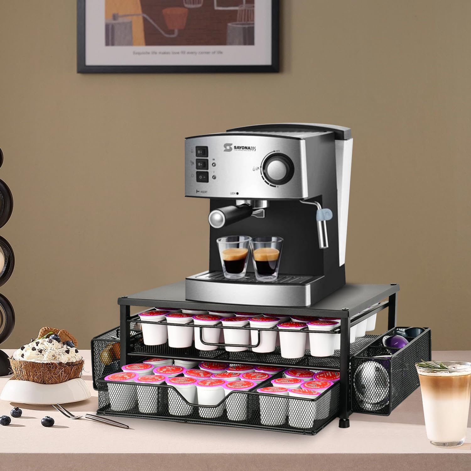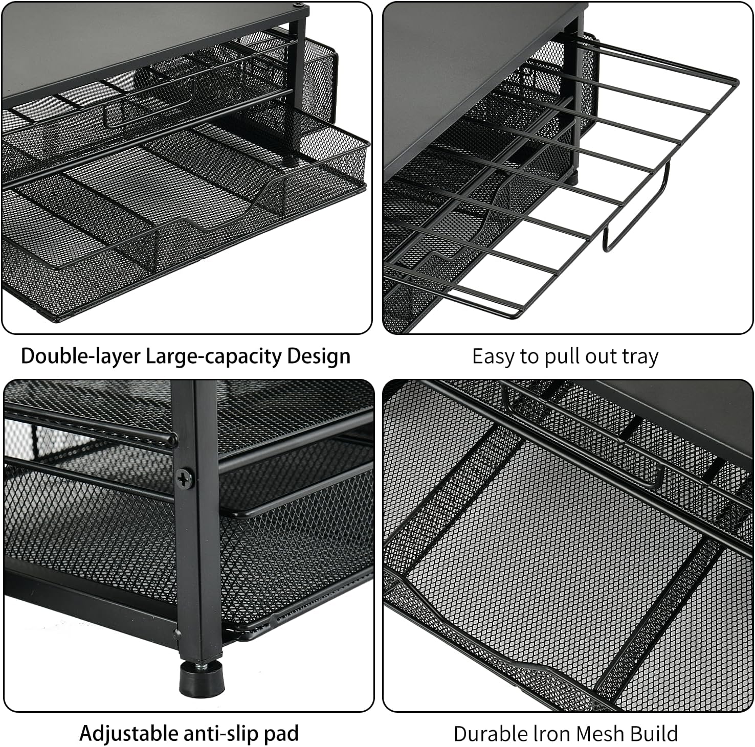 Spacrea K Cup Holder Organizer- Coffee Pod Holder for Counter with 2 Tier Sliding Storage Drawer, Coffee Station Bar Accessories Holder, 63 Large or 80 Small Capsules, Home Kitchen (Black)