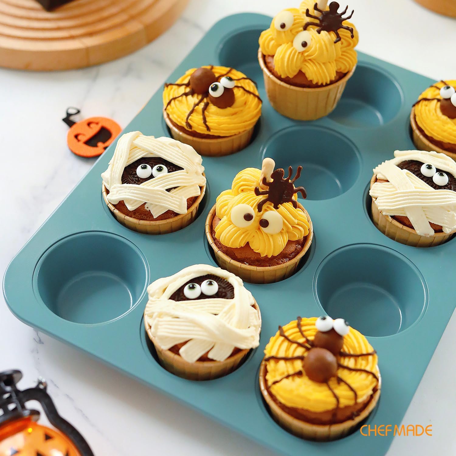 CHEFMADE Muffin Pan, 12 Cups Non-Stick Cupcake Baking Pan Heavy Duty Carbon Steel Pan Muffin Tins Standard Baking Mold for Cakes(Green)