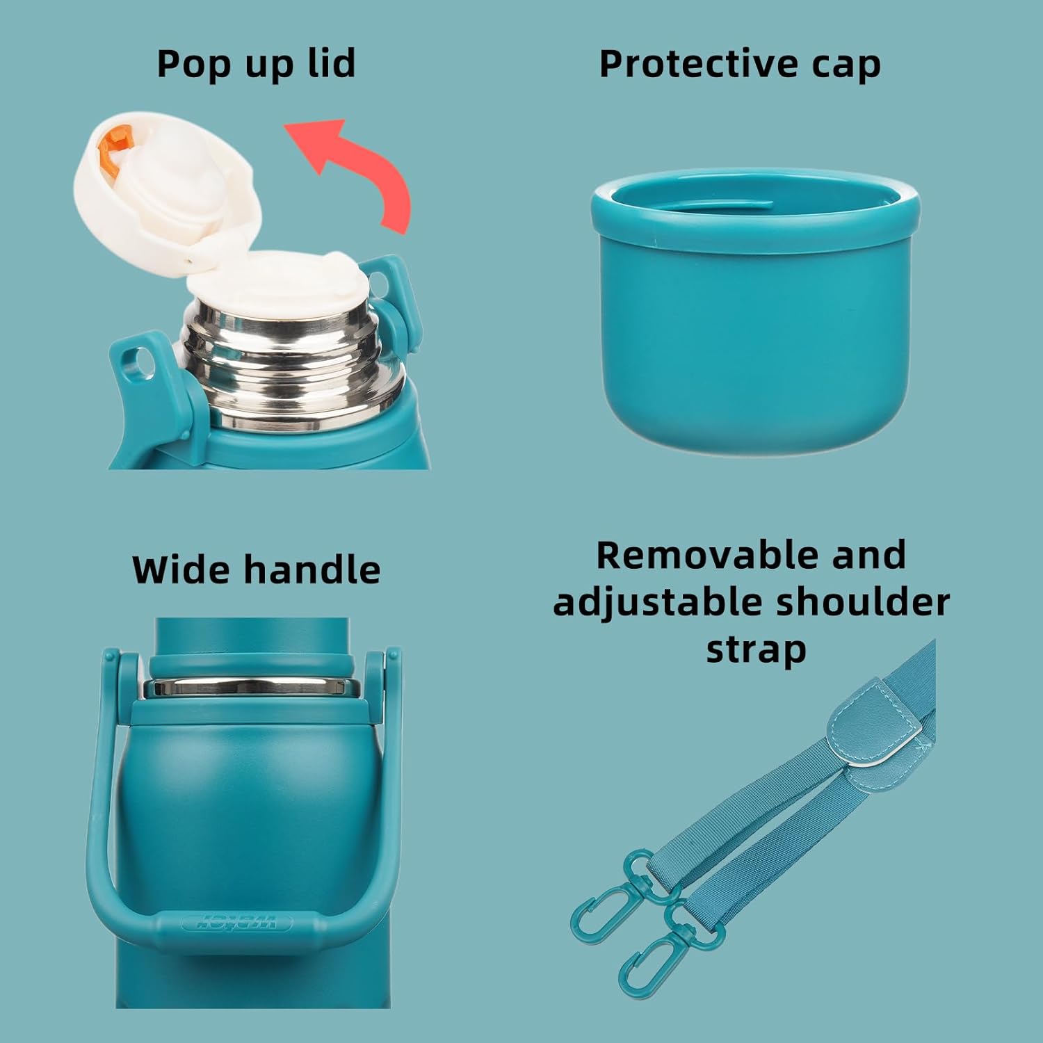 - BPA-Free Water Bottle with Carry Handle and Shoulder Strap: Has a silicone spout and a shoulder strap, all can removable for easy cleaning, comfortable handle makes it easy to carry, also making it an ideal choice for outdoor activities or everyday use