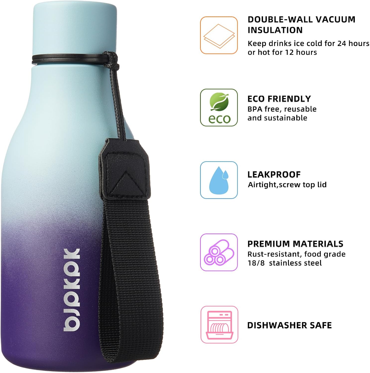 BJPKPK Insulated Water Bottles, 12oz Stainless Steel Metal Water Bottle with Strap, BPA Free Leak Proof Thermos, Mugs, Flasks, Reusable Water Bottle for Sports & Travel, Ocean Dream