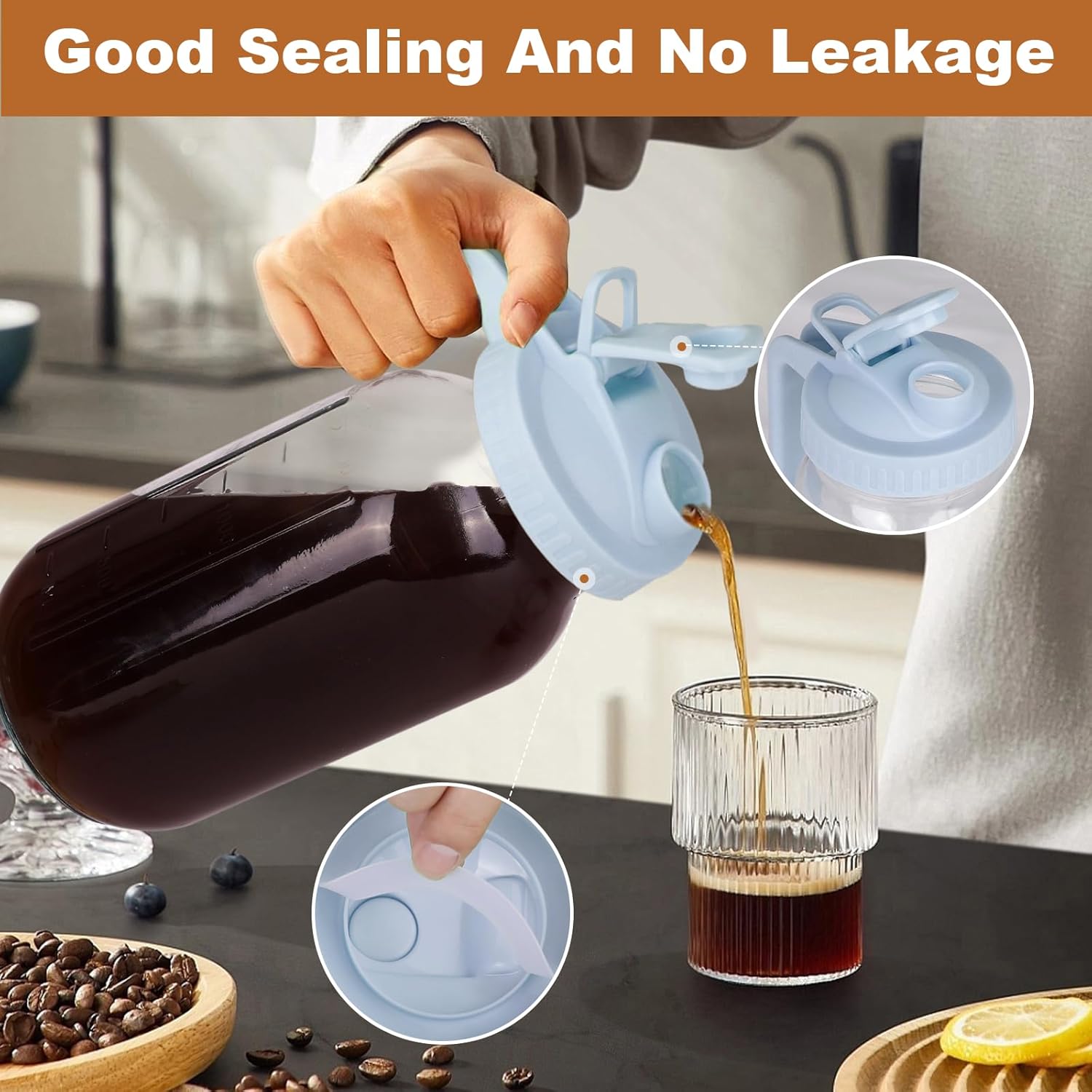 - 【Pour Spout Handle Lid】: The ergonomically thicken handle ensures a firm grip and make the cold brew coffee pitcher easy to carry. The airtight spout and well sealing silicone ring will make you say goodbye to unwanted spills & food odors, prolonging fridge beverage freshness. The flip cap lid design make the cold brew pitcher become a easy pour dispenser for pouring and storage.