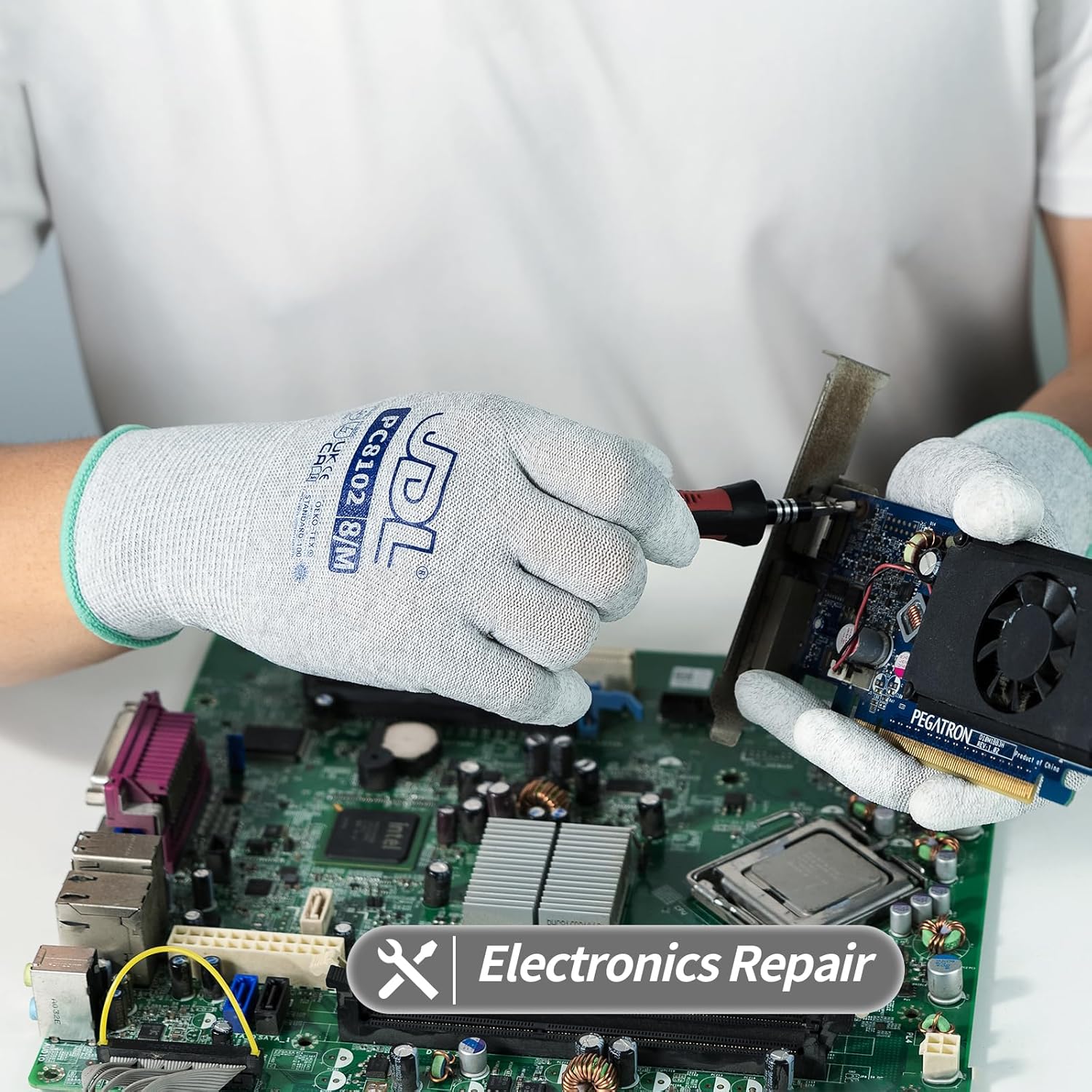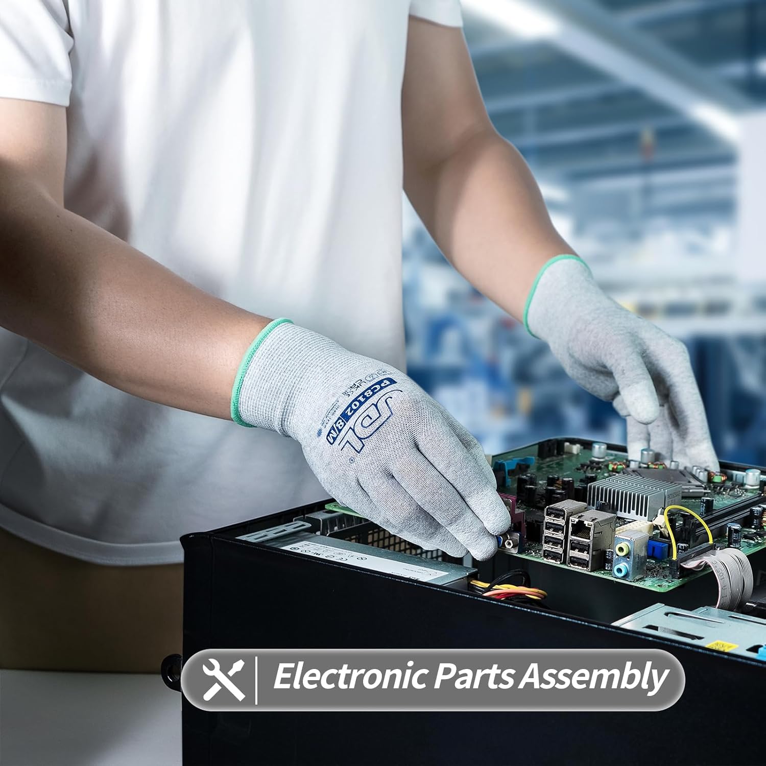 JDL ESD Work Gloves, Anti-Static Gloves for PC Building, Computer Installation & Repair, High Resistance Carbon Fiber Gloves, 6 pairs, Small