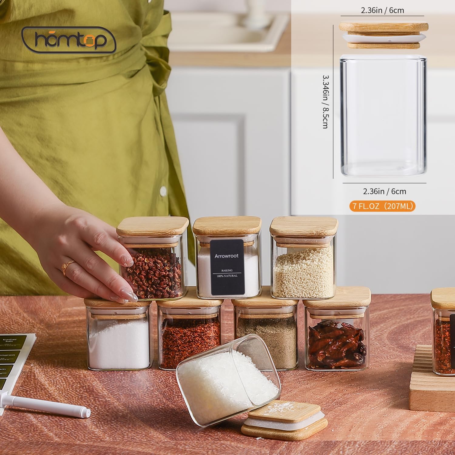 16Pcs 7oz Spice Jars Glass Container with 275 Labels, Airtight Seasoning Empty Organizer with Bamboo Lid Set for Pepper, Salt, Sugar