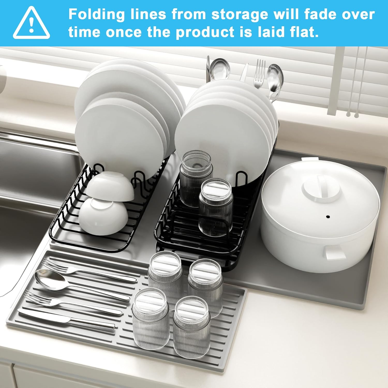 - ๐๐๐ฌ๐ฒ ๐ญ๐จ ๐๐ฅ๐๐๐ง ๐๐ง๐ ๐๐ญ๐จ๐ซ๐: The silicone mat is simple to cleanโjust wipe off spills or place it in the dishwasher. Its soft and flexible material allows for easy rolling or folding, saving space in your kitchen. This dish drainer for kitchen counter is a essential item for first apartment can also be used as a drawer liner or a cabinet liner, also a good pet feeding mat.
