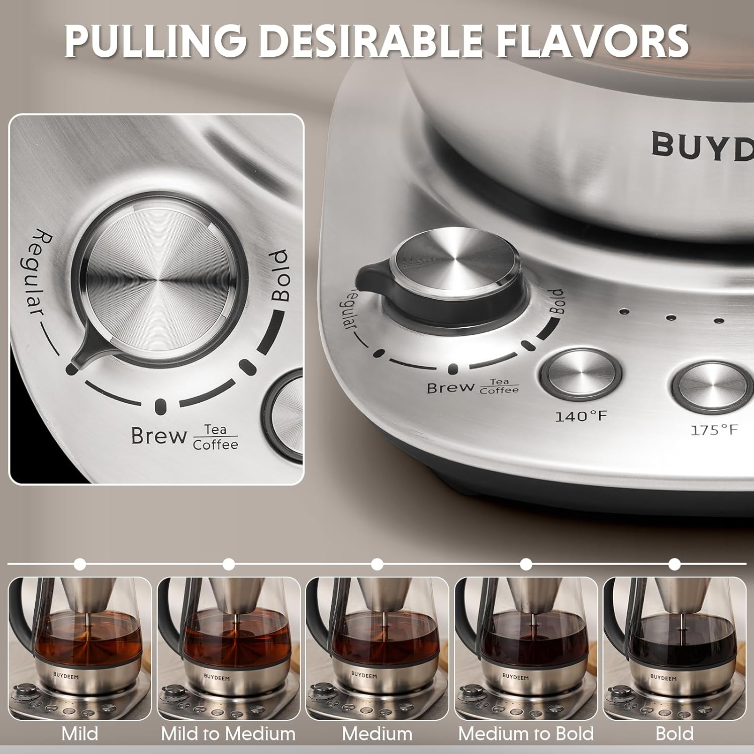 BUYDEEM K176 Tea Maker, Multifunctional Stainless Steel Electric Kettle for Tea and Coffee Brewing, Auto Keep Warm, 5 Flavor Controls, 1.5L