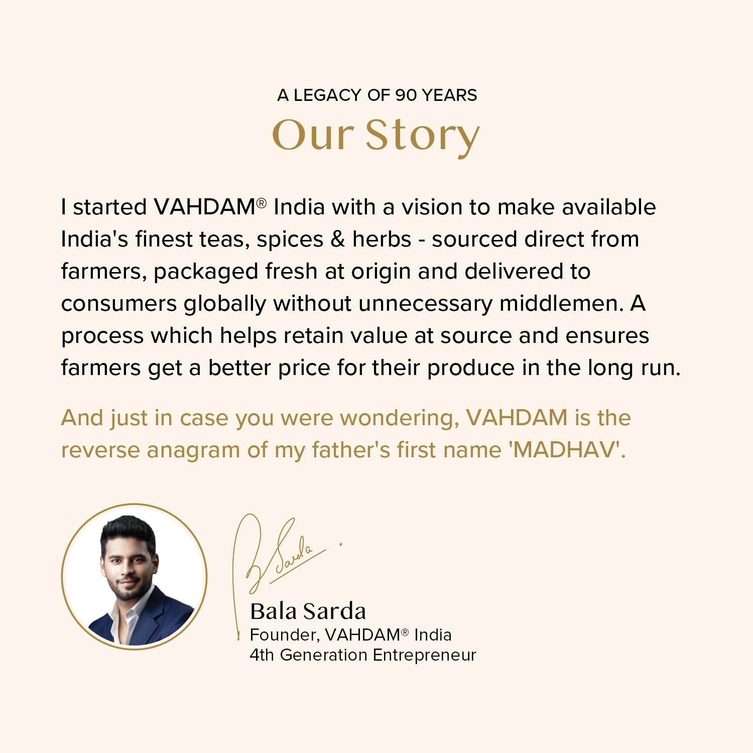 - A Brand With a Billion Dreams - Feel alive with VAHDAM India’s premium teas. A leading global brand, we ship to over 3 million customers in 130+ countries. Proudly carbon-neutral and plastic-neutral, we invest in environmental sustainability under our home-grown, sustainable label.
