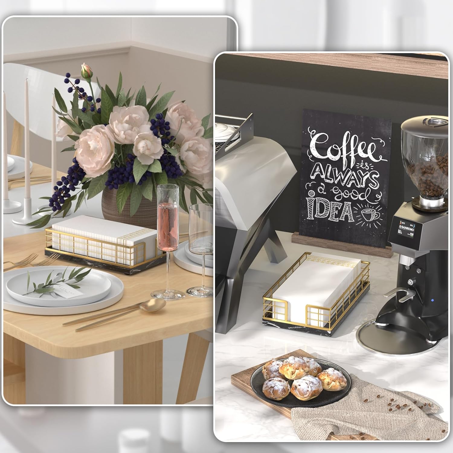 Wican Marble Guest Towel Holder Tray for Bathroom, Napkins Holder for Powder Room Dinning Table Wooden Basket for Disposable Paper Hand Towels Gold and Marble Black