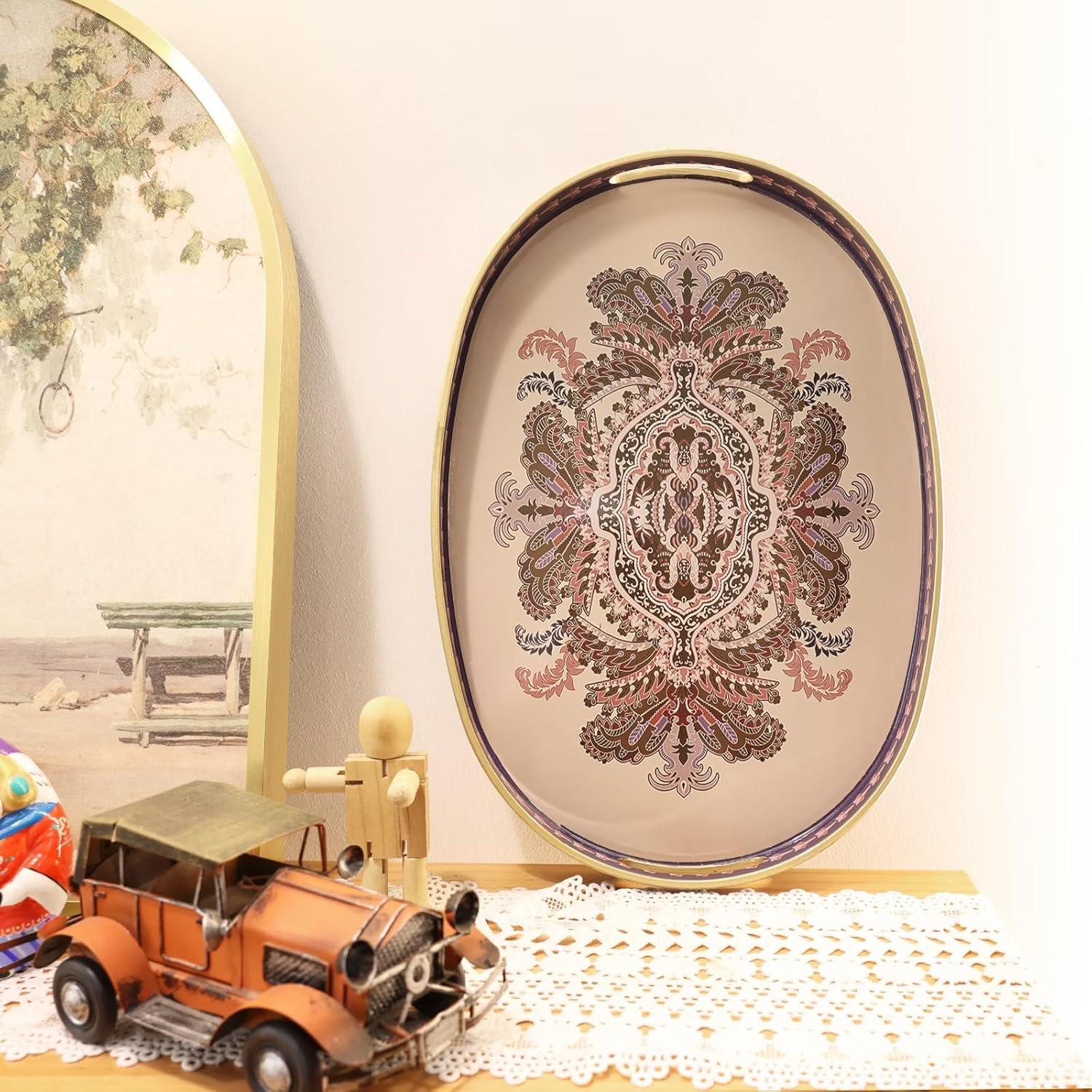 Oval Plastic Serving Tray with Handles, Elegant Decorative Tray for Coffee Table, Ottoman, Living Room, Kitchen, Outdoor Use. 10"*16"*1.4" B