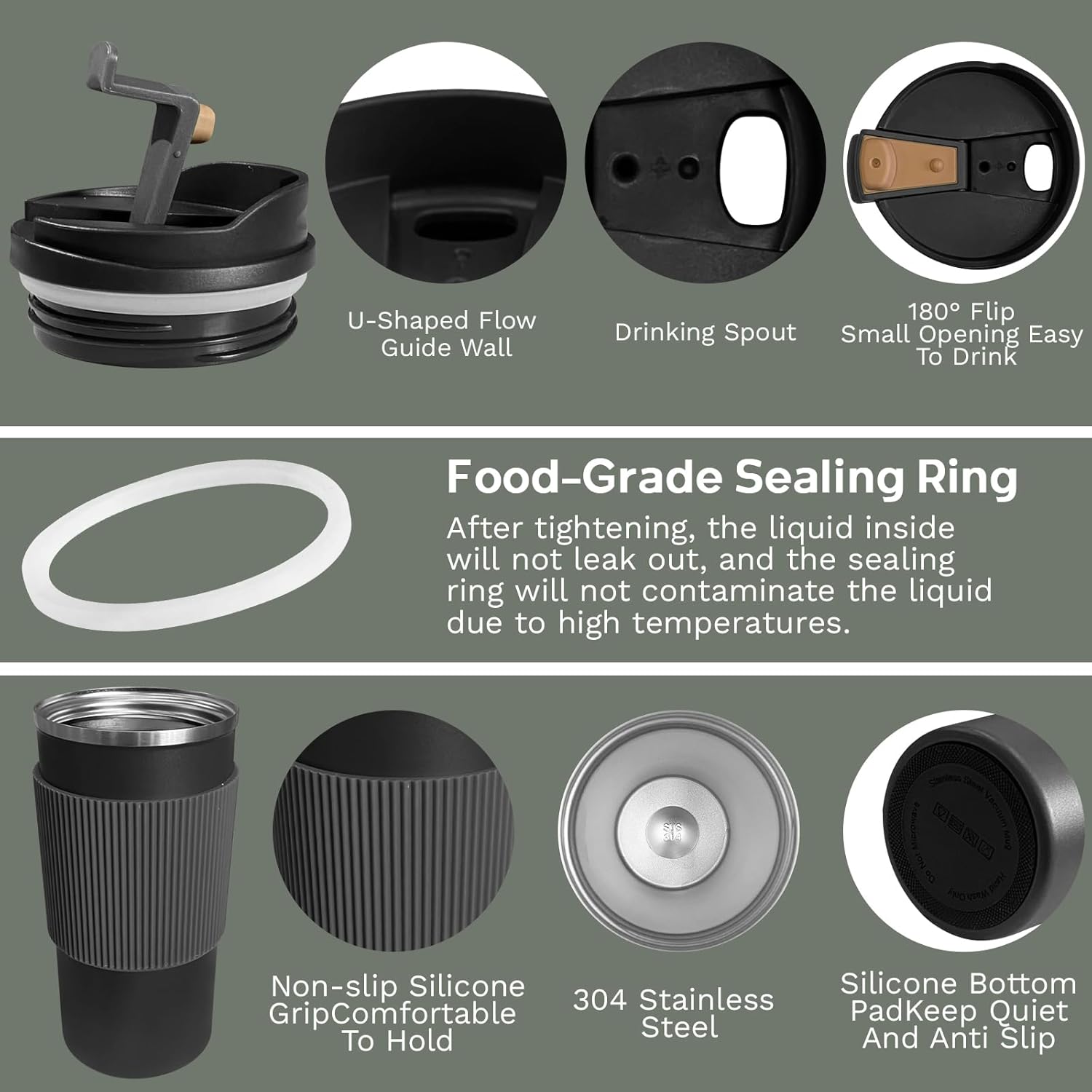 - Leakproof and Spill-proof: The stainless steel coffee mug come with a screw-on sealed lid that ensures your drink won't spill if it's knocked over or stored in a bag. The lid has a tight seal with a sealing ring to prevent leaks and spills, and it is easy to screw on and off. The drink hole on the top makes sipping easy and convenient.